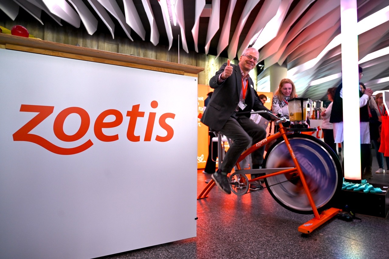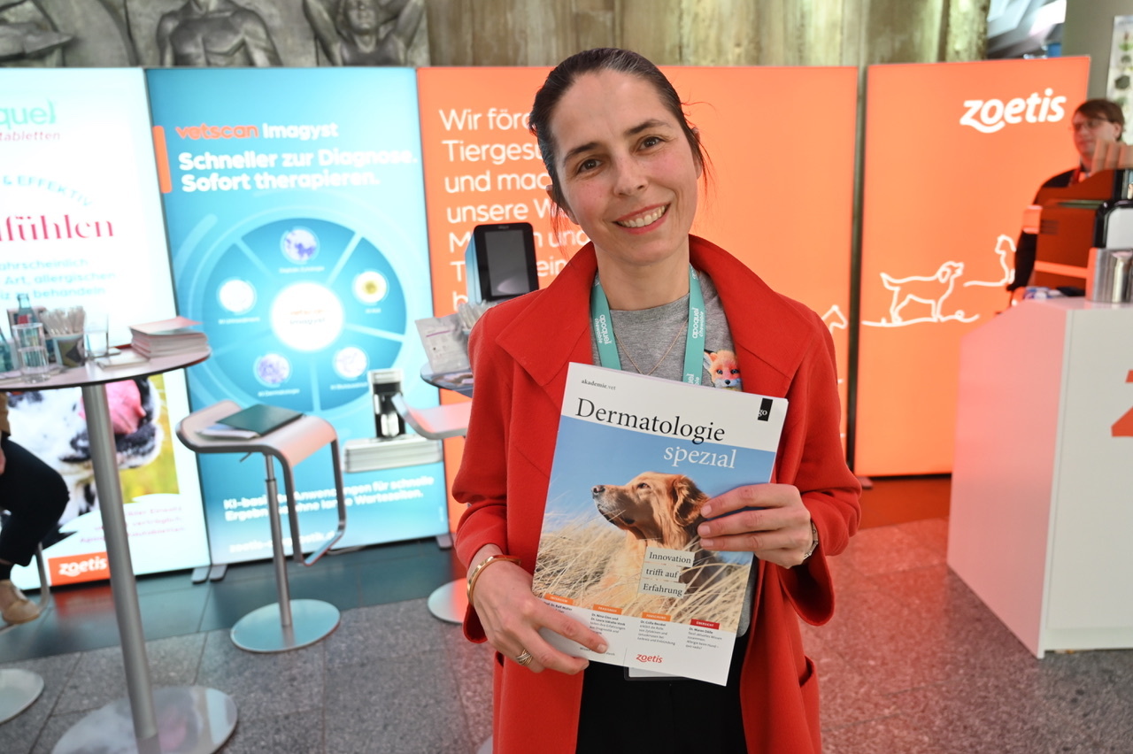 Bevor die Besucher:innen am Zoetis-Stand ein gesundes, vitaminreiches Getränk bekamen, mussten diese erst einmal in die Pedalen treten. DGVD-Präsident Dr. Wieland Beck machte es vor und mixte sich durch den Einsatz seiner Körperkraft einen leckeren Smoothy. Besonders erfreute ihn, dass das Lunch-Symposium mit Dr. Maren Dölle wieder bis auf den letzten Platz ausgebucht war. Mit Dr. Edda Hoffmann führe man bereits Gespräche, so dass dieses erfolgreiche Fortbildungsformat auch im kommenden Jahr in Düsseldorf wieder stattfinden kann. Dr. Christina Mayer, Tierärztin mit Leib und Seele, ist Medical Lead Companion Animals bei Zoetis Deutschland. In Chemnitz präsentierten sie und ihr Team mit Apoquel und Cytopoint zwei Produkte, die seit über einem Jahrzehnt effektive Lösungen für die Behandlung von allergischer und atopischer Dermatitis bei Hunden und Katzen bieten. Pünktlich zur DGVD-Tagung erschien das Kompendium "Dermatologie spezial", in dem namhafte Expert:innen, wie Prof. Ralf Müller, Dr. Maren Dölle, Dr. Nina Glos u.a., neueste wissenschaftliche und praxisnahe Informationen zur Hautgesundheit bei Kleintieren aufgreifen. "Wir hoffen, dass den Tierärzt:innen diese kurzweilige Lektüre eine fundierte Hilfestellung für den nächsten dermatologischen Praxisfall bietet", sagt Dr. Christina Mayer. Wer Interesse an dem Magazin hat, kann es über den Zoetis-Außendienst kostenlos erhalten. www2.zoetis.de