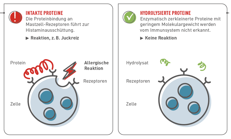 Diäten auf der Basis von hydrolysierten Proteinen leisten nicht nur einen wichtigen Beitrag bei der Diagnose von Futtermittelallergien, sondern auch beim Langzeitmanagement. Auch im Bereich der Gastroenterologie sind hydrolysierte Diätnahrungen auf dem Vormarsch! Bei hydrolysierten Diäten werden enzymatisch gespaltene Proteinquellen eingesetzt. Je stärker diese zerkleinert sind, das heißt, je geringer das Molekulargewicht ist, desto geringer ist ihr allergenes Potenzial.