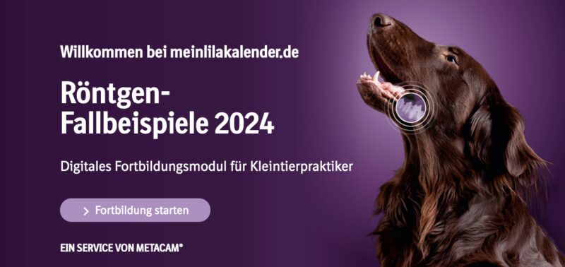 Weitere Informationen und Fallbeispiele aus dem Bereich Dentalröntgen bietet der diesjährige Metacam® Fortbildungskalender. Er liefert den praktizierenden Tierärzt:innen viele Tipps, die auch für die Kommunikation mit den Patientenbesitzer:innen eingesetzt werden können. Das Bildmaterial ist auch in der digitalen Version unter www.meinlilakalender.de erhältlich. Online kann zusätzlich eine ATF-Prüfung abgelegt werden, die mit 2 ATF-Stunden akkreditiert ist.