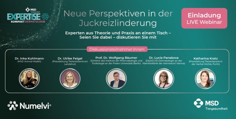 Im Rahmen des Webinars wird auch eine neue zielgerichtete Behandlungsoption vorgestellt: Numelvi® (Atinvicitinib). Dabei handelt es sich um den ersten in der Tiermedizin zugelassenen selektiven Januskinase-1-Inhibitor (JAK1) zur Behandlung von Juckreiz bei Hunden mit allergischer, einschließlich atopischer Dermatitis. Durch die hohe Selektivität des Wirkstoffs soll eine gezielte Hemmung der an der Entstehung von Juckreiz beteiligten Signalwege erreicht werden. Ziel ist es, Pruritus effektiv zu kontrollieren und gleichzeitig ein günstiges Sicherheitsprofil zu ermöglichen.