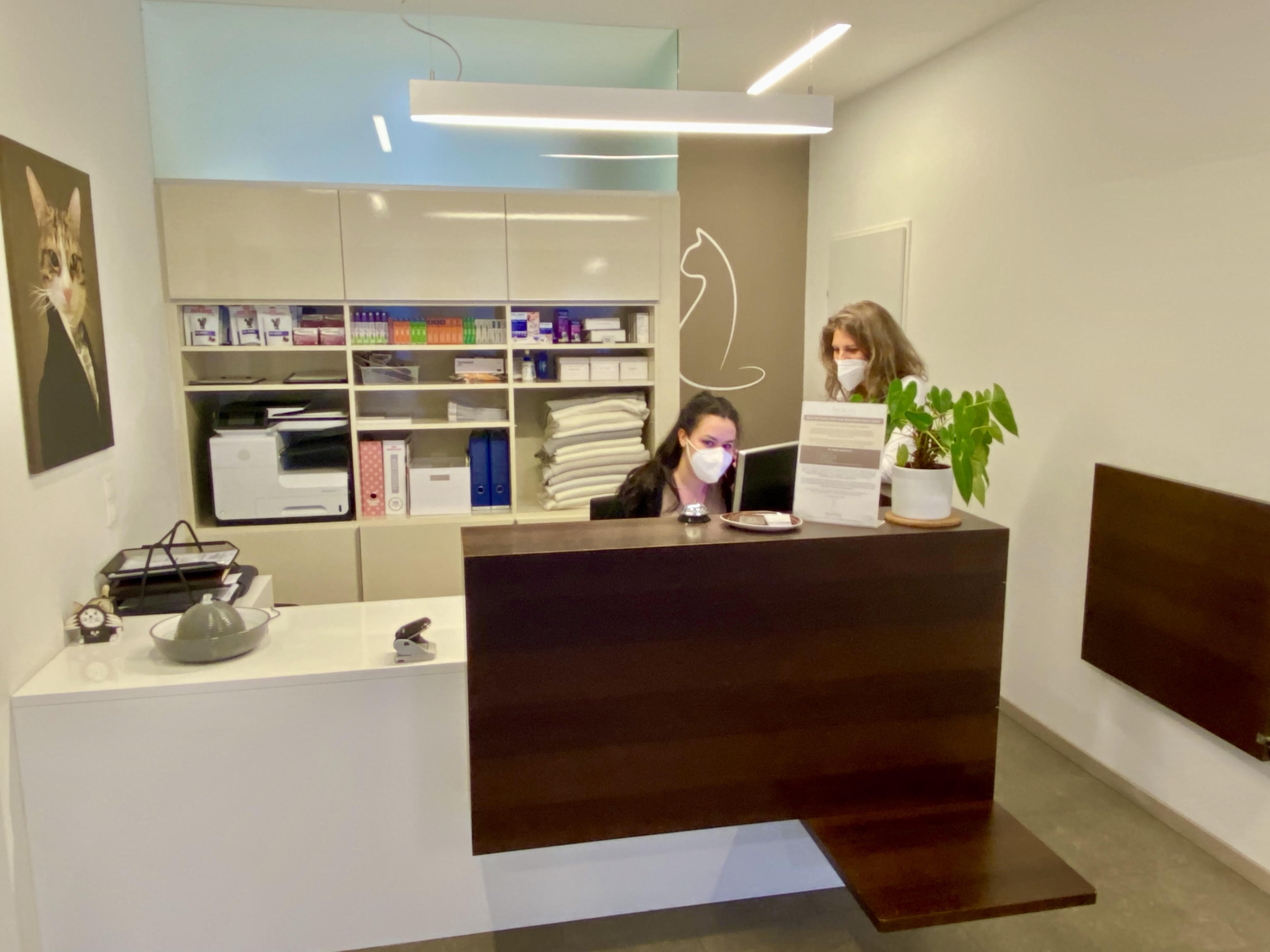 "Die Katze kommt eigentlich bei allen klassischen Fortbildungen zu kurz", sagt Hoyer und ergänzt, dass auch im Tiermedizinstudium der Hund stets im Mittelpunkt des Interesses stand und die Katze mit zwei, drei Nebensätzen "abgespeist" wurde. Um der Katzenmedizin einen Raum zu geben, haben sich die beiden entschlossen, am 15. November 2015 eine reine Katzenpraxis zu eröffnen. Die Gründe lagen für die beiden auf der Hand: neben der Liebe für Katzen und für die Katzenmedizin war der Wunsch, einfach etwas Neues zu machen, die große Triebfeder. "Spätestens, als wir die tolle Location direkt an der Hauptstraße gefunden hatten, die in früheren Zeiten als Tankstelle und als Blumenmarkt diente, war die Entscheidung für die eigene Praxis gefällt", erinnert sich Karin Kamm. Lachend erklärt sie, dass sie an einem Freitag, den Dreizehnten die Praxis eröffneten und per Radiospots versprachen, alle schwarzen Katzen kostenlos zu impfen. Über diese Aktion rümpften die Kolleg:innen zwar die Nase, doch zeigte die Maßnahme Wirkung. Es bildeten sich lange Schlangen vor der Praxis und natürlich war die beiden Praxisgründerinnen Stadtgespräch