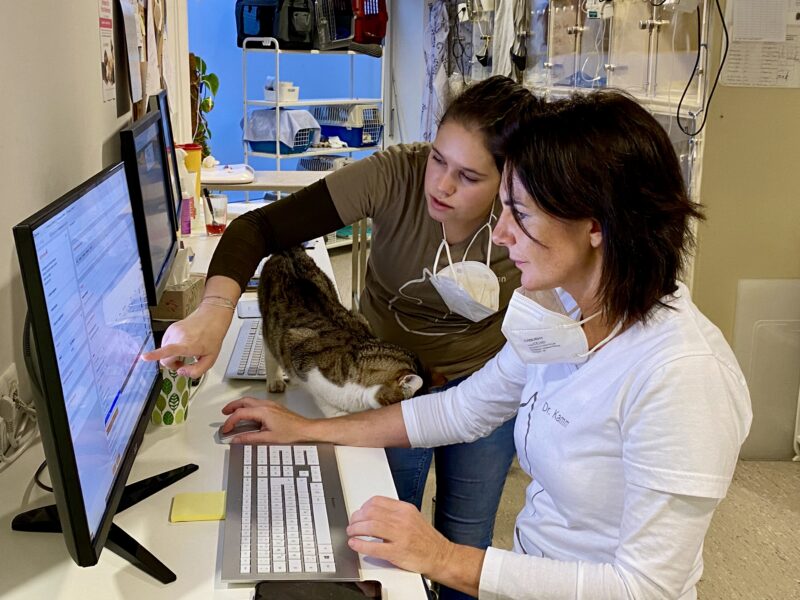 Doch in der Katzenpraxis geht man mit der medizinischen Betreuung noch weiter. Die beiden haben nach internationalem Vorbild ein Gesundheitsprogramm aufgelegt, das u.a. eine jährliche, bei älteren Tieren eine halbjährliche Vorsorgeuntersuchung vorsieht. "Wir geben den Besitzer:innen ein Schema an die Hand, damit die Katze optimal versorgt ist", erklärt Marie-Theres Hoyer. Inbegriffen in dieses Programm ist eine klinische Untersuchung mit Gewichtskontrolle, Blut- und Harnuntersuchung, Blutdruckanalyse und ein Bauchultraschall. Wenn sich die Halter:innen an den Plan halten, erhalten sie einen zehnprozentigen Rabatt auf die Tierarztkosten. "Wir wissen, dass wir nicht gerade günstig sind, doch lassen sich die Besitzer:innen die Gesundheit ihrer Tiere gerne etwas kosten", erklären die Tierärztinnen. "Unser Konzept kommt sehr gut an und hat sich bewährt."