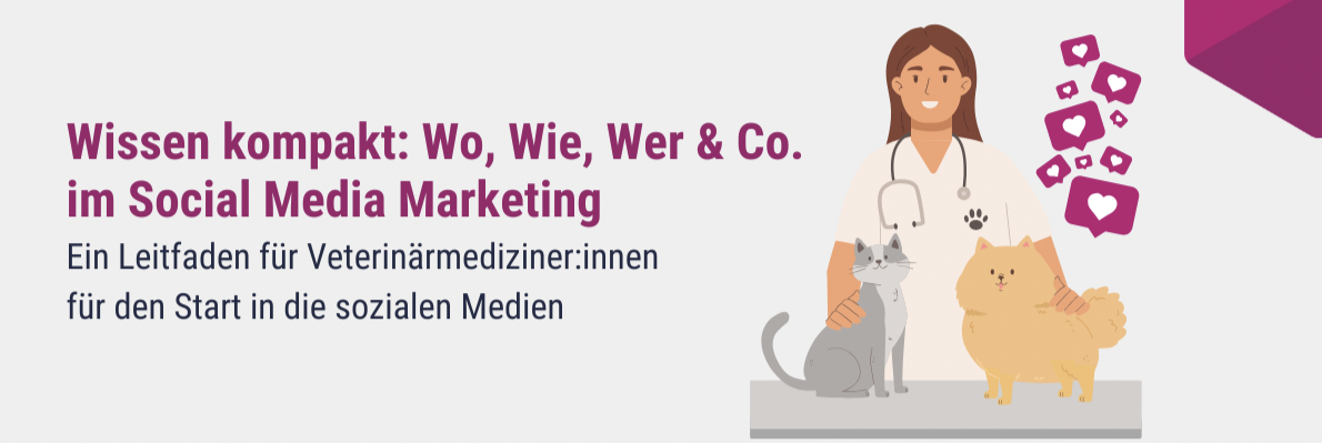 Außerdem haben wir gerade ganz aktuell einen 6-teiligen Ratgeber für Veterinärmediziner:innen veröffentlicht. Dieser beantwortet die 6 wichtigsten W-Fragen rund um Social-Media-Marketing. Dabei geht es um die wichtigsten Kanäle, Ideen für den perfekten Content und Tipps zur Umsetzung.