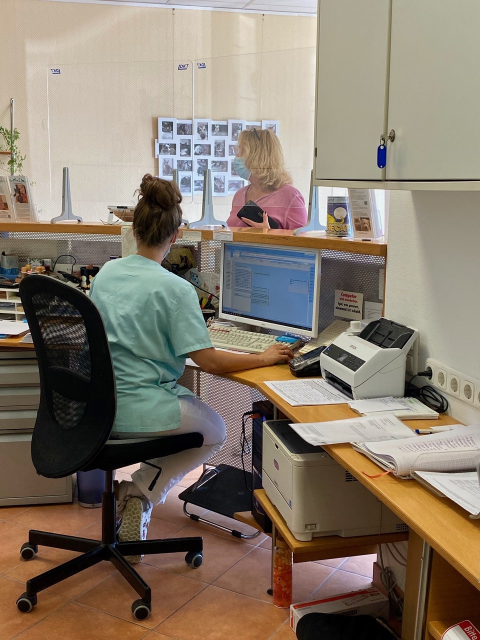 Der Katzenbehandlungsraum ist hell und freundlich, und vor allem riecht es hier - wie in der gesamten Praxis - gut. Die Tierärztin holt den Patienten im Wartezimmer ab und lässt sich über den aktuellen Stand vom Besitzer informieren. Coronabedingt wird hier weiterhin die Untersuchung ihne BesitzerIn durchgeführt. Danach wird die Katze gewogen, untersucht und behandelt - und das immer zu dritt. Gabriele Rummel arbeitet mit einer TFA und einer Auszubildenden, die sie unterstützen - eine am Tier, eine am Rechner. "Vorsorge ist das A & O", erklärt Rummel, "denn wir wollen unsere Patienten ja in der Praxis haben, wenn es ihnen gut geht! Durch unsere Gesundheitsprogramme sehen wir die Tiere regelmäßig in der Praxis." Die Tierärztin setzt auf Kommunikation und Aufklärung, die von ihren Kunden dankbar angenommen wird.