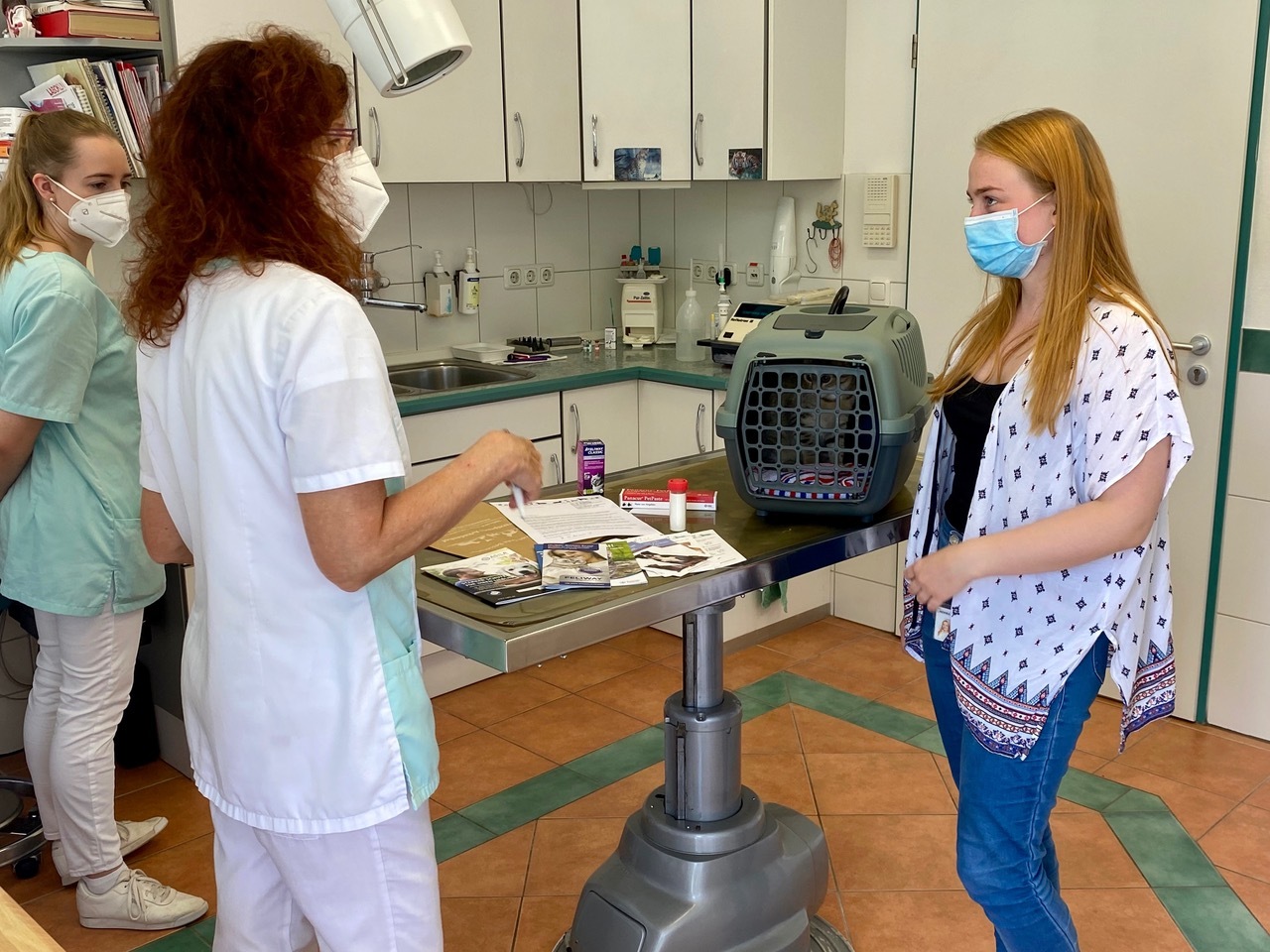 Für BesitzerInnen von Katzenwelpen , die zum ersten Mal in der Praxis zu Gast sind, nimmt sich die Tierärztin sehr viel Zeit, schließlich wird man sich in der Anfangszeit öfter sehen, um die Entwicklung und das Wachstum der jungen Katze zu überprüfen und ein Vertrauensverhältnis aufzubauen. Die BesitzerInnen sollen von Beginn an mit ihren Tieren üben, die Transportbox zu nutzen, kleinere Fahrten mit dem Auto zu unternehmen und regelmäßig in die Praxis zu kommen. "Das zahlt sich aus, denn diese Vorgehensweise nimmt sowohl den Tieren als auch den Menschen die Angst vor dem Tierarztbesuch", erklärt Rummel, die froh ist, dass der Anteil der StammkundInnen stetig wächst. Nachdem die Katze ein kleines Geschenk erhält, klärt die Tierärztin auf über den Einsatz von Pheromonen, über Parasitenschutz, notwendige Impfungen, die Bedeutung von Vorsorgeuntersuchungen und weist auf die Vorteile einer Tierkrankenversicherung hin. Die Ernährungsberatung folgt dann beim Folgebesuch, schließlich will sie die KundInnen ja nicht überfordern.