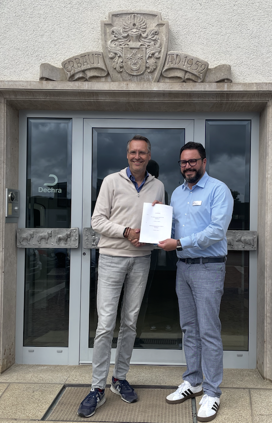Beide Unternehmen verbindet eine lange Marktgeschichte: Der Dechra-Vorgänger Albrecht wurde 1947 gegründet, die WDT kümmert sich bereits seit 1904 um die Belange der Tierärztinnen und Tierärzte in Deutschland. Beim Leipziger Tierärztetag wurde die Übergabe nun offiziell vollzogen. Tobias Tietje, Mitglied des Dechra Management Teams DACH, übergab den Praxisbedarf symbolisch an Christof Ehlen, Vorstand der WDT.