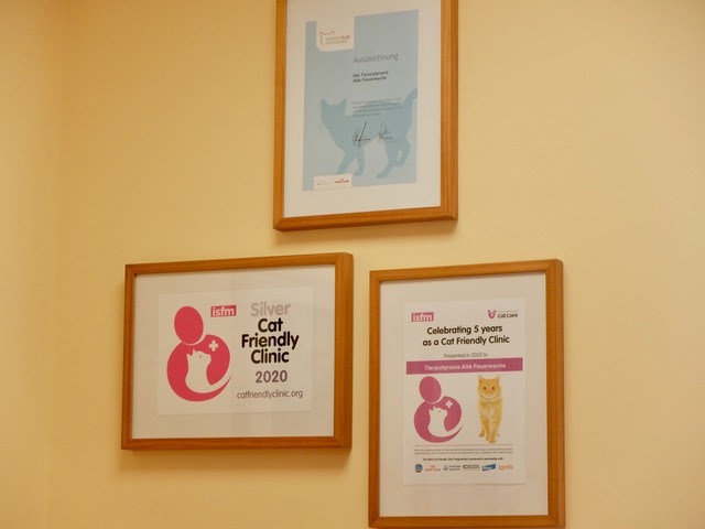 "Wir haben eigentlich schon immer cat-friendly gearbeitet und das vollkommen intuitiv umgesetzt, ohne zu wissen, dass es eine offizielle Bezeichnung dafür gab", erklärt Praxischefin Dr. Andrea Heckler. Der Impuls, sich als katzenfreundliche Tierarztpraxis zertifizieren zu lassen, kam durch eine Kundin an der Supermarktkasse. Es folgten Improve-Fortbildungen, der ISFM-Beitritt, schließlich die Umsetzung und Zertifizierung als katzenfreundliche Tierarztpraxis. "Wir haben ein eigenes Wartezimmer für die Katzenpatienten eingerichtet, natürlich gibt es eine separate Katzenstation und wir nutzen die Feliway-Decken vor jeder Behandlung", erklärt Dr. Andrea Heckler. "Die Besitzer bestätigen uns tagtäglich, dass ihre Tiere in der Praxis deutlich entspannter sind, für uns gestalten sich Handling und Behandlung der Katzen sehr viel einfacher und das macht einfach Spaß", so die 55-jährige Tierärztin. "Auch wenn für mich persönlich der Kontakt mit den Menschen teilweise sehr anstrengend ist, finde ich es umso schöner, dass sich die Katzen hier bei uns so wohl fühlen." Neben der Mund-zu-Mund-Propaganda hat sicherlich das Zertifikat "Catfriendly Clinic" geholfen, dass sich der Anteil der Katzenpatienten in den letzten zehn Jahren von 25 auf gut 40 Prozent gesteigert hat.