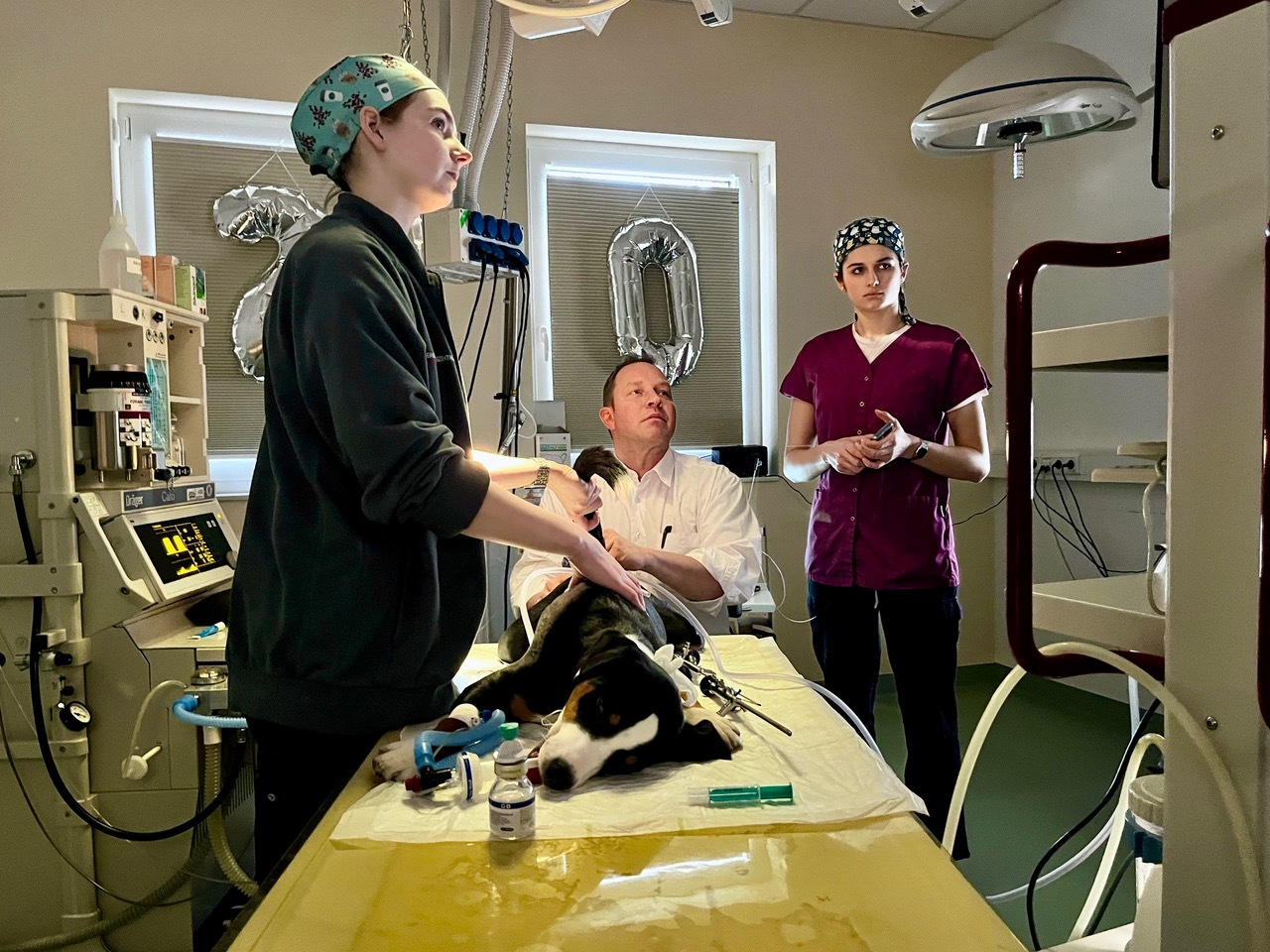Derzeit wird mit Hochdruck am Ausbau einer neuen Etage gearbeitet, die nicht nur abgetrennte Arbeitsbereiche für die leitenden Personen und mobile Arbeitstische für die Mitarbeitenden, sondern auch Platz für Vorträge vorsieht, an denen 200 Personen teilnehmen können. Erstmals wird im Herbst 2023 eine solche Großveranstaltung für Tierärzt:innen stattfinden, doch auch Premium-Ausbildungstage mit starkem Praxisbezug sind in der Planung, ebenso wie die vier Kliniktage für Studierende und der Tag der offenen Tür am 3. Juni.