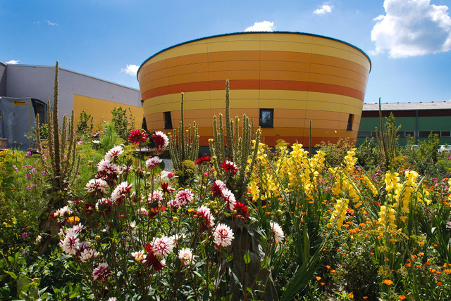 Darüber hinaus investiert das Unternehmen kräftig, Sandra Graf-Schiller spricht von einem Betrag, der zwischen fünf und sechs Millionen Euro liegt. Anfang September konnte das neue Verwaltungsgebäude mit großem Konferenzraum und Cafeteria bezogen werden. Außerdem sind auf dem Außengelände ein großer Kräuter- und Heilpflanzengarten sowie ein Parkplatz für 80 Fahrzeuge entstanden. Dr. Graf-Schiller ist stolz auf das barrierefrei erreichbare, zweigeschossige Gebäude, das über eine direkte Verbindung zum bereits bestehenden Bürotrakt, der im Anschluss modernisiert werden soll, verfügt. "Hier in unserem großen, modern eingerichtetem Konferenzraum haben wir die Möglichkeit, unsere Besucher bestens betreuen zu können", erklärt sie, "vor allem aber können wir unsere Fortbildungsveranstaltungen für bis zu 100 Menschen professionell durchführen." Darüber hinaus werden auf den beiden Ebenen gut 40 neue Arbeitsplätze eingerichtet, und in der Cafeteria finden rund 80 Personen Platz.
