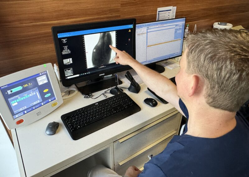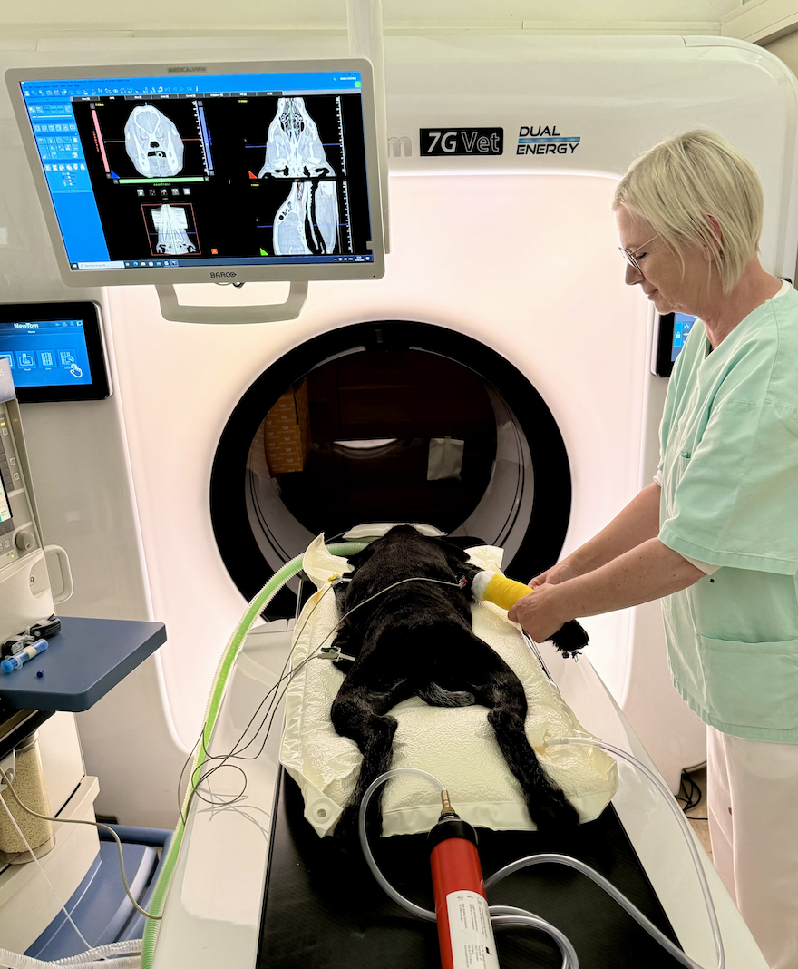 "Wir haben schon 2016 mit der CBCT Technologie gestartet und damals den NewTom 5GXL direkt vom Hersteller bezogen", erklärt Simon Hebenstreit. "Sechs Jahre später haben wir den 7G dann von Gregor Tauschitz, dem Inhaber der Firma Visiovet, bezogen. Die Klinik Altheim war eine der ersten, die das CBCT testete und regelmäßig Studien durchführte, deren Ergebnisse in die Weiterentwicklung mit einflossen und zur Verbesserung der Technologie beitragen. "Mittlerweile besuchen uns Tierärzt:innen aus Österreich, Deutschland und der Schweiz, um sich vor Ort einen Eindruck der Möglichkeiten zu machen.