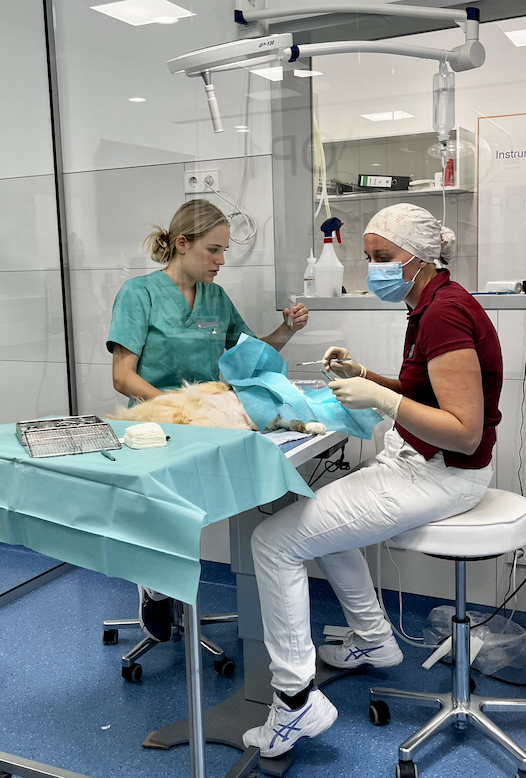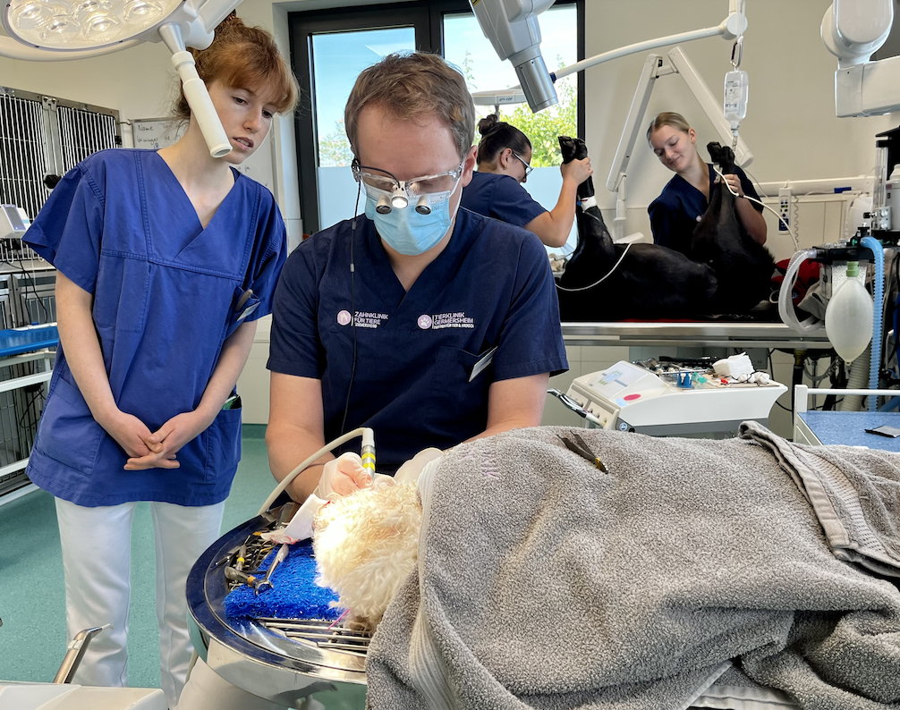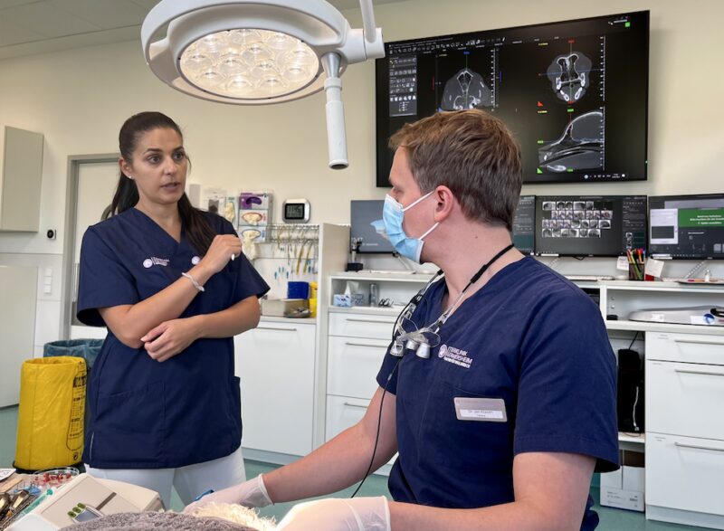 "Wir als Tierärzt:innen haben uns dem lebenslangen Lernen verschrieben", erklärt Martina van Suntum, der der ganzheitliche medizinische Blick auf ihre Patienten wichtig ist. Die Fachtierärztin für Kleintiere und Fachtierärztin für Zahnheilkunde hat lange Zeit die Abteilung für Zahnheilkunde, Oral-, Kiefer- und Gesichtschirurgie in Germersheim geleitet, ist Mitbegründerin und langjähriges Vorstandsmitglied der DGT und engagiert sich in Seminaren und Vorträgen für die Ausbildung von Tierärzt:innen und Studierenden. Auch im neuen Germersheimer Klinikgebäude ist eine große Fläche vorgesehen, die für Inhouse-Fortbildungen und Veranstaltungen für die überweisenden Tierärzt:innen der Region vorgesehen sind. "Künftig werden wir in lockerer Folge Seminare verschiedenster Art rund um die Klein- und Heimtiermedizin veranstalten.