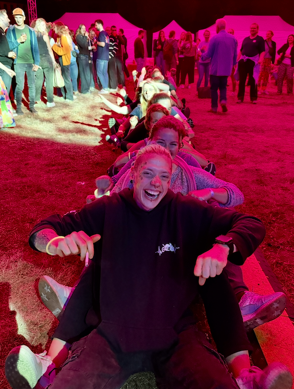„Die Idee kam, als ich aus dem Fenster auf unsere Apfelbaumwiese schaute“, erinnert sich Holger Volk. „Warum nicht die Hörsäle für klassische Vorträge nutzen – und draußen Festivalstimmung mit Austausch, Musik und Lernerlebnissen schaffen?“ Unterstützt von allen Klinikleiter:innen der TiHo nahm die Vision schnell Gestalt an - Michael Pees und Julia Tünsmeier stimmten ein, das Konzept dieses Jahr umzusetzen. "Als wir gemeinsam im April des Jahres entschieden haben, die Veranstaltung in Hannover umzusetzen, war das ein typischer Sonnenbrillen-Moment - ein bisschen zu groß, ein bisschen verrückt, aber genau deswegen die richtige Idee“, so Volk. Und tatsächlich wurde aus der anfänglichen Idee mit einzelnen Zelten binnen vier Monaten eine ganze „Zeltstadt“. Besonders stolz sind die Organisator:innen auf den Zusammenhalt innerhalb der Hochschule. „Endlich haben einmal alle Kliniken gemeinsam an einem Strang gezogen“, so Volk. „Auch Mitarbeitende aus Verwaltung und Technik haben mitgeholfen – bis hin zu nächtlichen Einsätzen auf der Tanzfläche.“