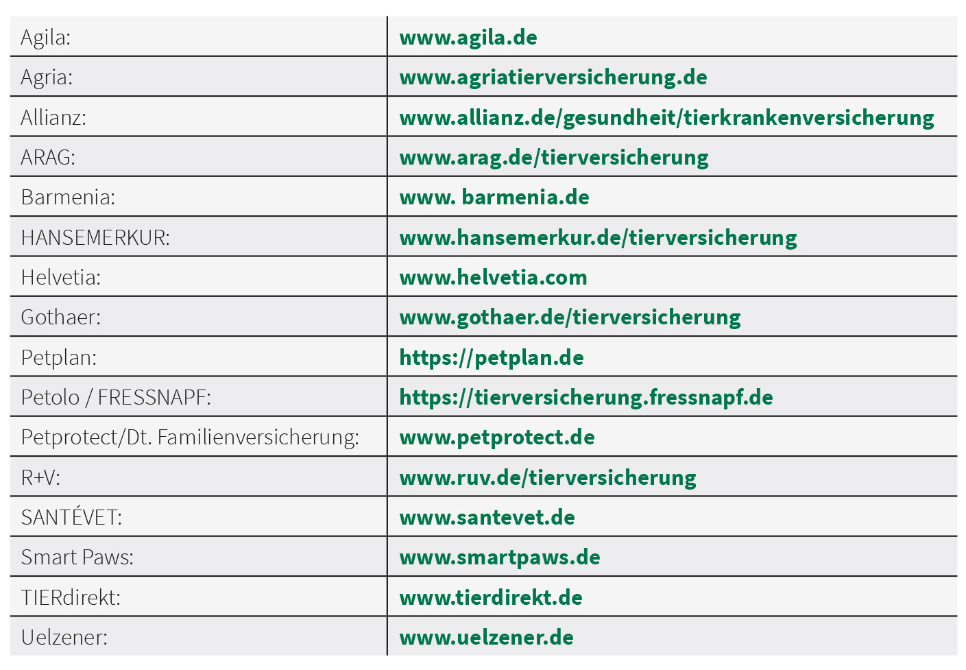 PS: Das sind die Tierkrankenversicherungen in alphabetischer Reihenfolge: