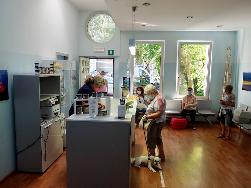 Einen typischen Arbeitstag gibt es in der Bozener Klinik nicht, was sicherlich daran liegt, dass keine Termine vergeben werden. "Wir haben gut ein halbes Jahr vor der Pandemie versucht, eine Terminsprechstunde einzurichten", erklärt Kirchler, "doch haben die Patientenhalter diese Idee nicht besonders gut angenommen." Die Kundschaft, die zu einem großen Anteil aus Stammkunden besteht, ist mit der Klinik groß geworden und hat sich an die Arbeitsweise gewöhnt. Im zweigeteilten Wartebereich, der Hunde- und Katzenbesitzer voneinander trennt, hat Sekretärin Cristiane de Stefani alles im Griff. "Sie hat früher in einem Hotel gearbeitet und ist ein Organisationstalent", erklärt Kirchler. Die beiden Chefs arbeiten, unterstützt durch Assistenzarzt Luca Zampiccoli, den ganzen Tag im Team zusammen in den beiden durch eine Schiebetür getrennten Untersuchungsräumen. Im Durchschnitt kommen die beiden auf diese Weise auf 50 Patienten. Dabei verstehen sich die beiden auch ohne Worte - zur nonverbalen Kommunikation reichen meist für den Besucher kaum erkennbare Gesten. Wenn tatsächlich etwas zu diskutieren ist, ziehen sich die beiden Tierärzte in den Röntgenraum zurück und kommen in Rekordzeit zu einem Ergebnis.