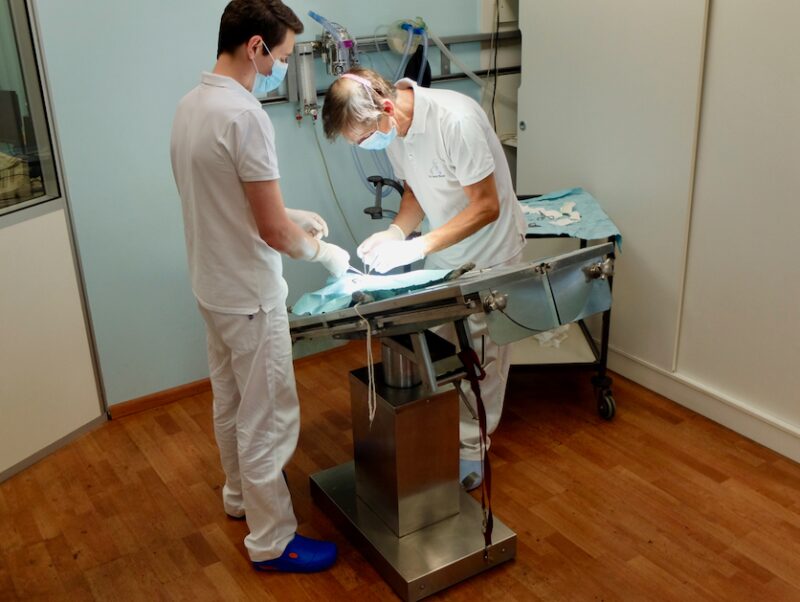 In der Sprechstunde am Nachmittag geht es dann genauso intensiv wie am Vormittag weiter. Meistens sind die beiden dann gegen 19 Uhr zu Hause. Natürlich springen die beiden Chefs auch ein, wenn der Notdienst, für den die beiden drei TierärztInnen eingestellt haben, unterbesetzt ist. Da bleibt nicht viel Zeit für Hobbys und geschweige denn für Urlaub. In der Regel genehmigen sich beide Partner einmal im Jahr eine Woche am Stück Ferien.