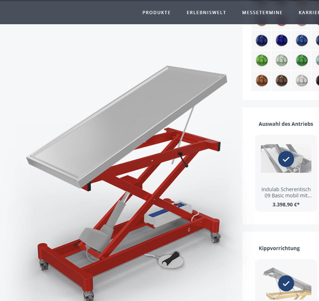 2. Konfigurator und Individualisierung. Ein Highlight ist der digitale Tisch-Konfigurator, über den Tierärzt:innen OP-Tische und auch Dentaleinheiten nach eigenen Bedürfnissen gestalten können – live im Showroom oder via Videocall. Farbe, Größe, Ausstattung – alles ist wählbar. Dadurch wird aus dem „Produkt“ ein Werkzeug, das sich an den Workflow in der jeweiligen Praxis anpassen lässt.