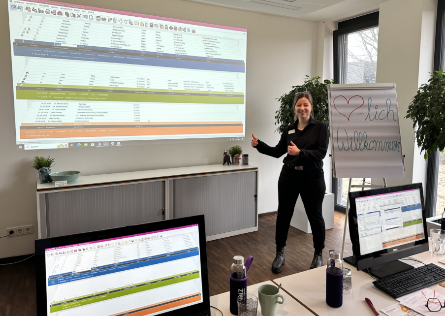 Ingo Fraedrich hat sich im Rahmen einer Rundreise durch diverse Praxen und Kliniken vor allem die Prozesse im Anmeldebereich genau angeschaut und diese analysiert. Er verspricht, dass bei der Anmeldung von Neukind:innen, wo Dokumente ausfüllt, ausgedruckt, eingescannt und abgelegt werden, jeweils 15 bis 20 Minuten Zeit eingespart werden können, wenn dieser Prozess künftig mit einem Klick rechtssicher umgesetzt wird.