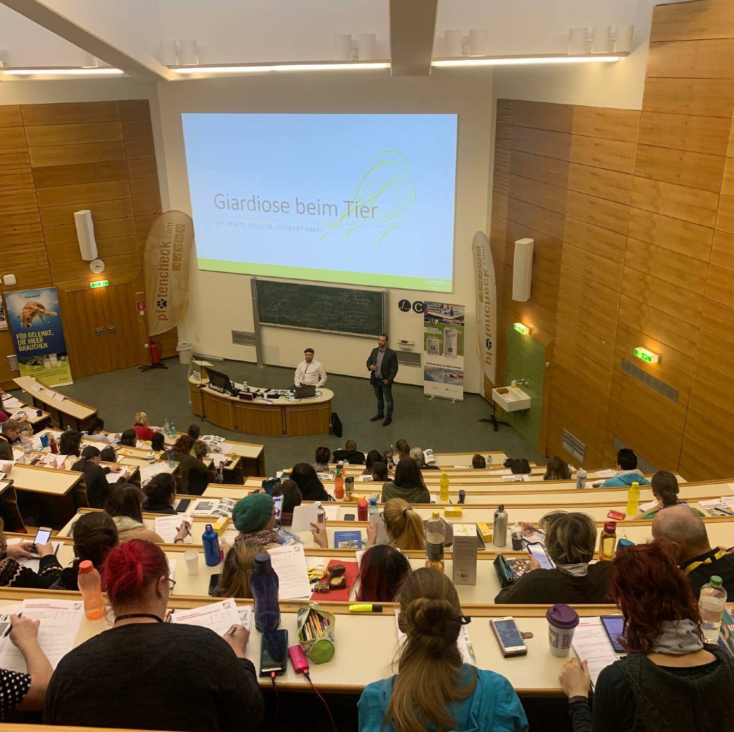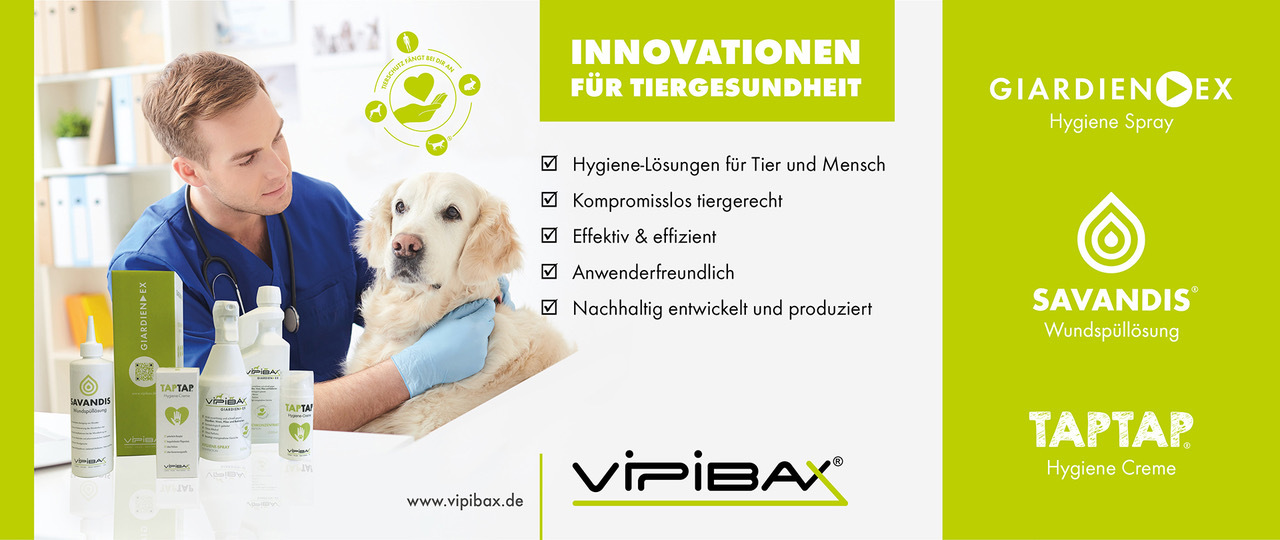 Regelin, Babytskyi und Issajew sind davon überzeugt, dass „One Health“ („Eine Gesundheit“) im Zentrum eines zeitgemäßen und damit tiergerechten Hygienekonzeptes stehen muss. Deshalb widmet sich das Unternehmen Desinfektionslösungen, die Mensch und Tier helfen, ein gesünderes Leben zu führen. Jeder Tierarzt, jede Tierärztin und natürlich auch die Tiermedizinischen Fachangestellten kennen das Problem der Patienten mit Giardien. Wenn ein an einer Giardiose erkranktes Tier im Behandlungszimmer war, stellt sich unmittelbar die Frage nach der Dekontamination. Je nach Mittel kann dies ein langwieriger Prozess sein, der den normalen Arbeitsablauf empfindlich stört. ViPiBaX hat mit den Produkten von „ViPiBaX® Giardien Ex“ Hygiene-Lösungen entwickelt, die nicht nur zuverlässig Bakterien, Pilze, Viren und Giardien bekämpfen, sondern auch noch schnell und unkompliziert zum Einsatz kommen. Die Produkte sind dermatologisch getestet und werden ohne Alkohol und Parfums hergestellt, so dass sich deren Anwendung problemlos in bestehende Abläufe integrieren lässt und die Bedenken selbst anspruchsvollster Patientenbesitzer zerstreut werden. ViPiBaX® Giardien Ex ist als Hygiene-Spray oder als Zusatz für das Wischwasser erhältlich und beseitigt Mikroorganismen auf allen relevanten Oberflächen. Giardien haben keine Chance mehr. ViPiBaX Giardien Ex Produkte sind für Tierärzte bei der WDT erhältlich. Die Haustierbesitzer können bequem online bei Tierarzt24.de bestellen, so dass gewährleistet ist, dass der Internetumsatz auch beim behandelnden Tierarzt bleibt ("WDT - mit Voldampf in die Zukunft"). „Gardien bei Welpen“