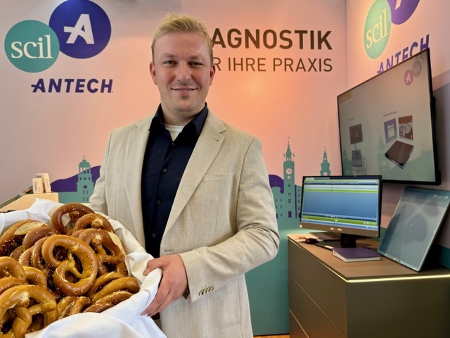 Viele Tierärzt:innen kennen die scil animal care company, ein Antech Unternehmen und damit Teil eines der weltweit führenden Unternehmen im veterinärmedizinischen Diagnostikbereich. Philipp Zöller ist Regionalmanager für Österreich und die Schweiz, war zum ersten Mal mit eigenem Stand auf der VÖK-Tagung und war hocherfreut über das rege Interesse in Salzburg. "Unser Sortiment besteht aus modernsten Diagnostikgeräten aus den Bereichen In-house Labor und Bildgebender Diagnostik, sowie auf Kundenbedürfnisse maßgeschneiderte Dienstleistungen aus dem Bereich Versandlabor und medizinischer Expertenberatung", erklärte Zöller, der auf das Beraterteam hinwies, das aus hochqualifizierten und erfahrenen Produktspezialist:innen besteht. Mehr Infos: www.scilvet.de/beratung