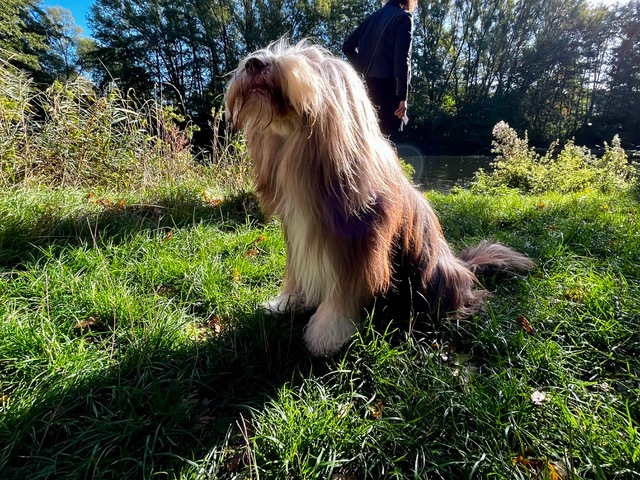 Einer der aufgeweckten Hunde in der Gruppe hört auf den Namen Johnny Cash. Seit zwei Jahren lebt der Bearded Collie mit Dr. Birthe Schock zusammen, die ihn mit Beginn der Pandemie aus einer schwierigen, familiären Situation gerettet hat. "Im Büro hebt das Seelchen die Stimmung und reißt jeden mit seiner Energie mit", beschreibt die seit 10 Jahren bei der WDT beschäftigte Tierfreundin. Die Hunderunde in der Mittagszeit ist ein fester Termin, zu dem alle Hundehalter:innen zusammenkommen.