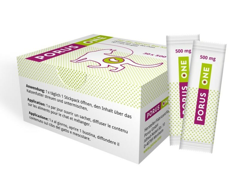 Mit dem hochselektiven Adsorber Porus® One bietet sich ein innovativer Ansatz zur Reduktion urämischer Toxine. Porus® One enthält den Inhaltsstoff Renaltec®, der die Vorstufen urämischer Toxine im Darm bindet und über den Kot ausscheidet, so dass daraus keine urämischen Toxine mehr gebildet werden. Das ist gut für die Nierengesundheit der Katze.