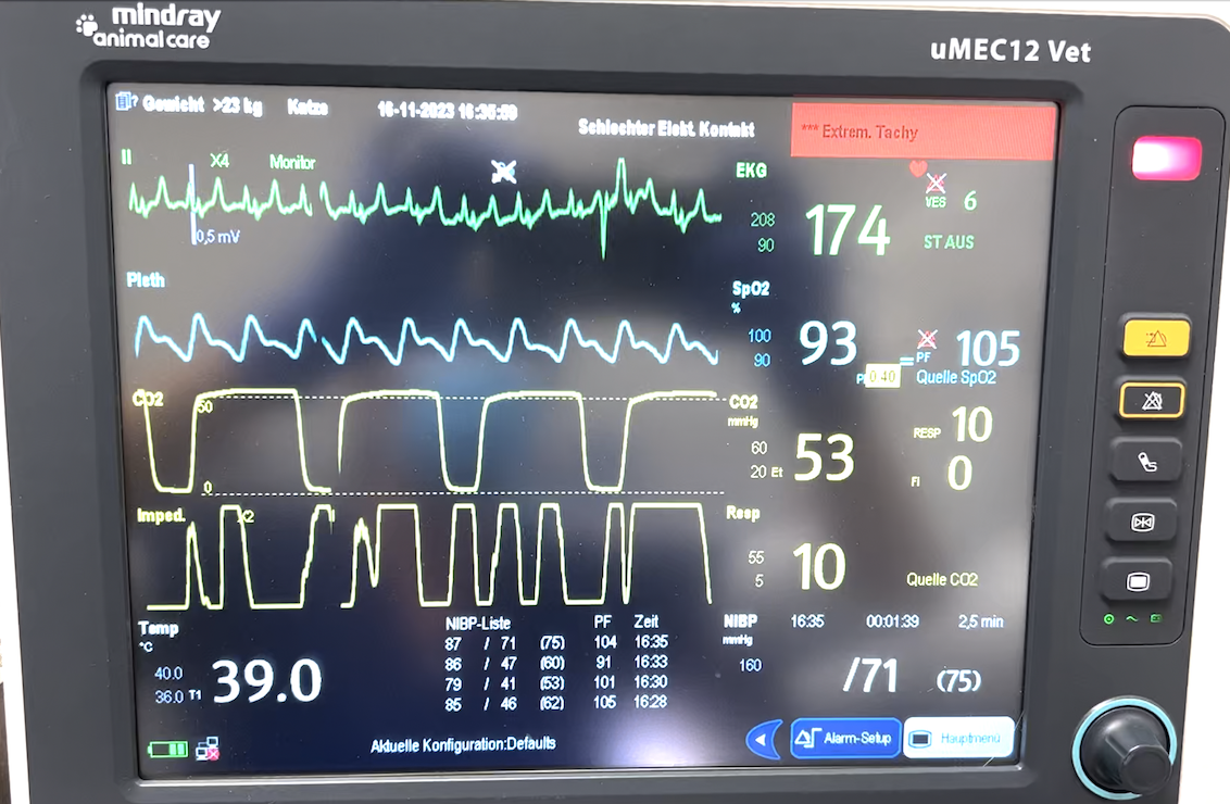 Nicht zu früh und nicht zu spät… Bei den meisten unserer Kleintierpatienten verwenden wir ein sogenanntes Rückatem- oder Kreissystem als Atemsystem an unserem Anästhesiegerät. Einer der großen Vorteile im Vergleich zum Nicht-Rückatemsystem ist der sparsame Verbrauch von Sauerstoff und Isofluran. Dieser wird ermöglicht, weil das ausgeatmete CO2 durch den Atemkalk gebunden wird, so dass der Patient bei der nächsten Einatmung ein CO2-freies Isofluran-/Sauerstoff-Gemisch einatmen kann.