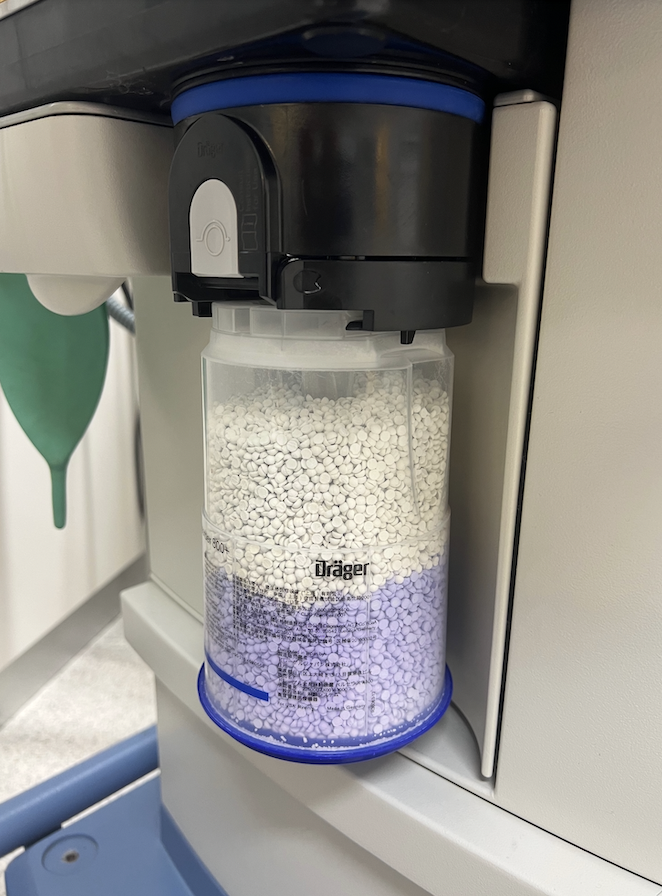 - „Wir dokumentieren die Anästhesiezeit in Stunden und wechseln den Atemkalk nach einer bestimmten Stundenanzahl.“