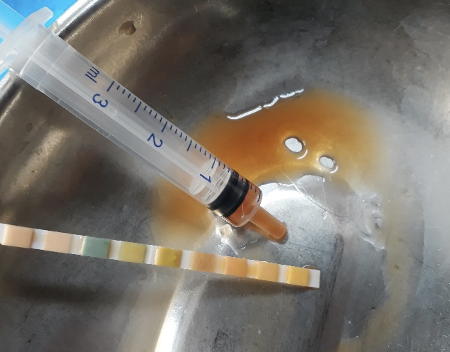 - makroskopische Untersuchung (Farbe, Geruch, Trübung)