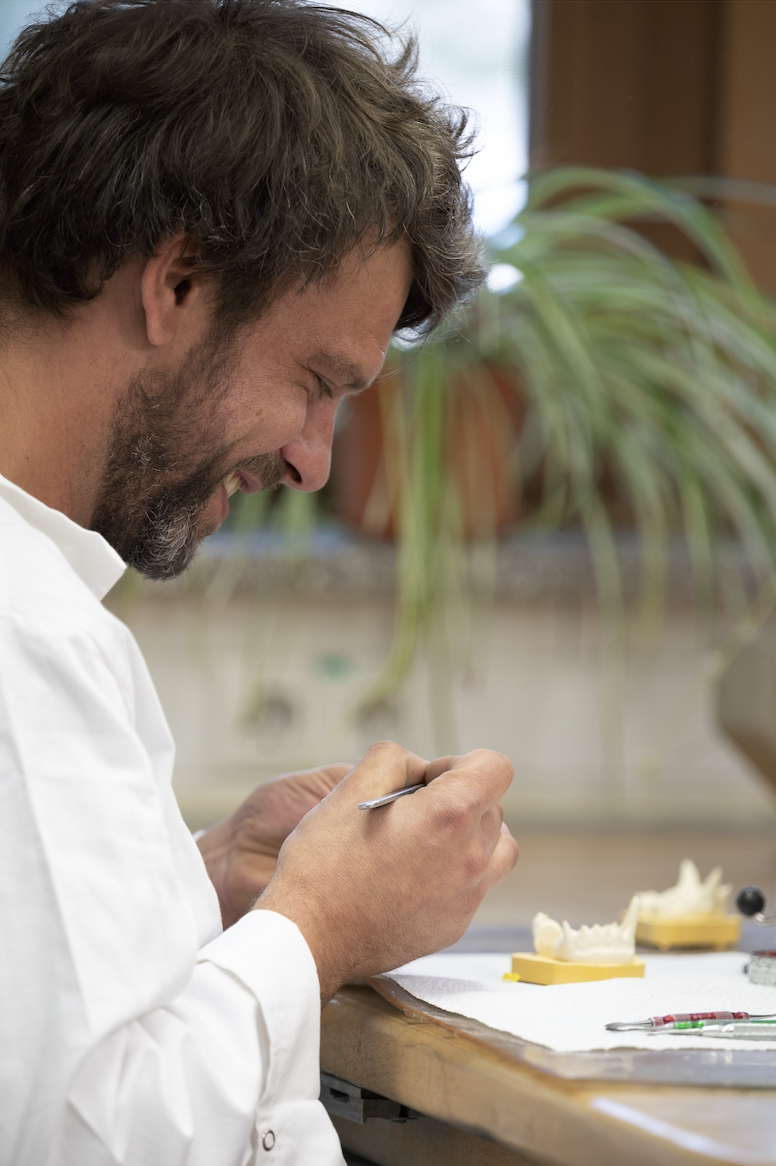 Symbiose aus Zahnbehandlung, Abdrucknahme, Modellherstellung, Kronenherstellung und Eingliederung