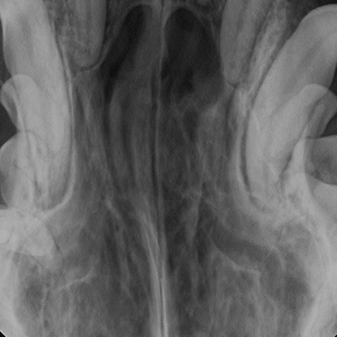 „Prinzessin“, eine dreieinhalbjährige Pekinesen-Mischlings-Dame wurde wegen Husten in der Sprechstunde vorgestellt. Bereits während der Anamnese erklärte die Besitzerin, dass der Hund schon seit dem Welpenalter unter rezidivierendem Husten litt. Die Hustenanfälle traten bevorzugt nach Wasseraufnahme auf. Scheinbar hatte „Prinzessin“ auch Schwierigkeiten beim Schlucken. Es wurden immer wieder Lungenentzündungen diagnostiziert, die mit Antibiotika, Mucolytika und NSAID behandelt wurden.