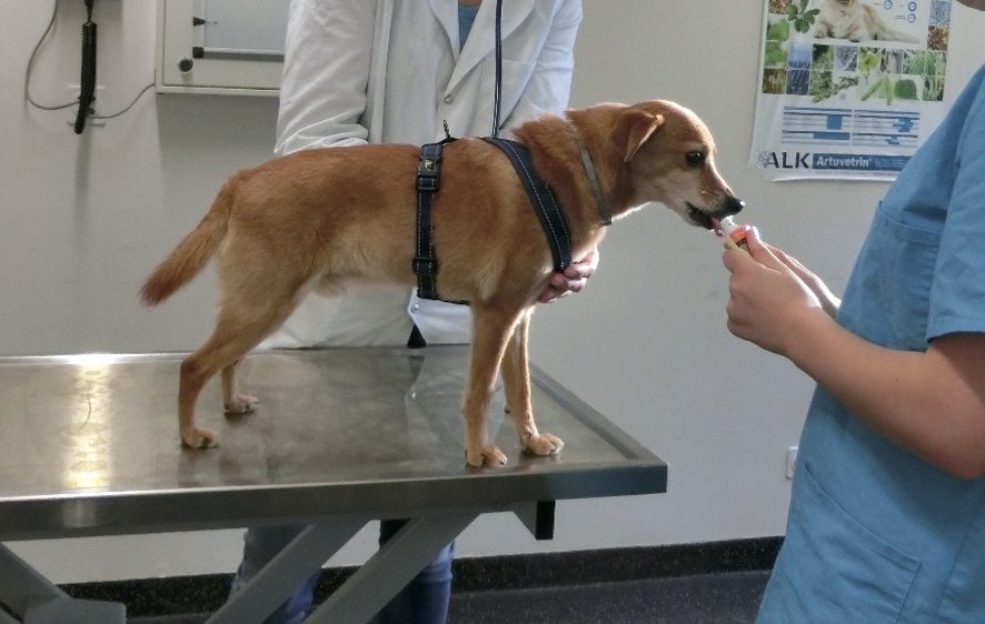 Befindet sich ein Patient im gelben oder roten Bereich und die geplante Tätigkeit ist nicht akut notwendig (beispielsweise eine Impfung), sollte in Betracht gezogen werden, die Behandlung zu vertagen und den Hund beim nächsten Anlauf mit pre-visit medication (beispielsweise Trazodon, Gabapentin, Dexmedetomidin Gel, Alprazolam o.ä.) zu unterstützen. Solche angstlösenden Medikamente können durch den Halter:innen vorab verabreicht werden, um der Angst die Spitzen zu nehmen und die Low-Stress-Handling-Maßnahmen so zu unterstützen. Da die Wirkung von pre-visit medications auf das Verhalten sehr