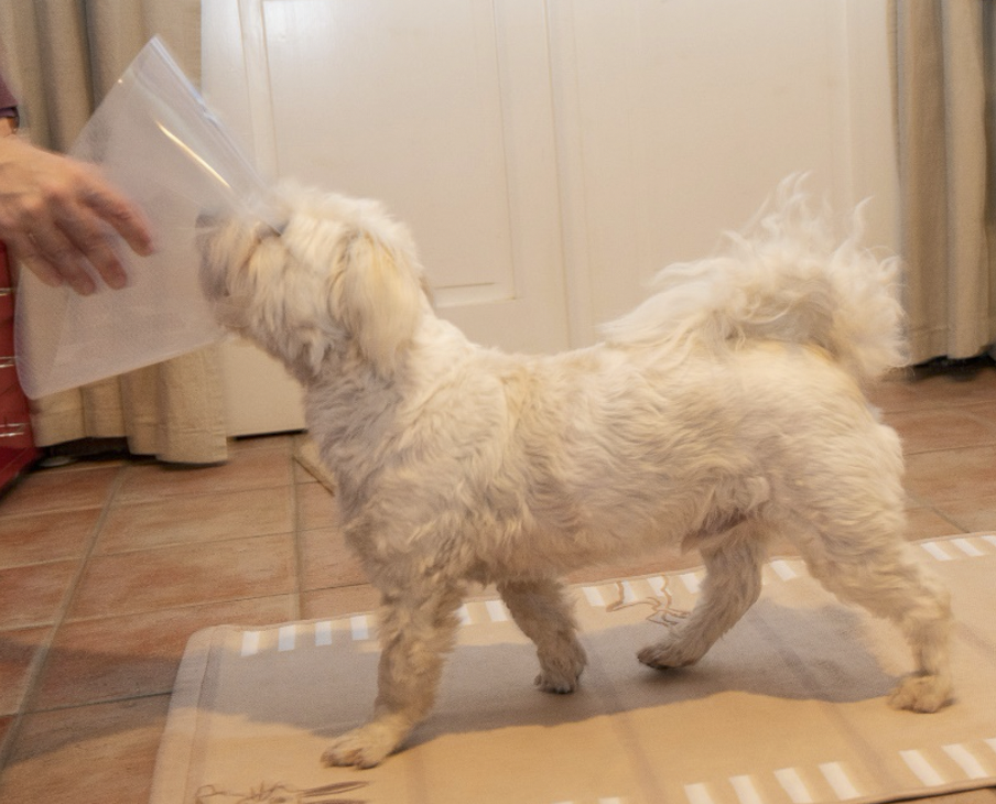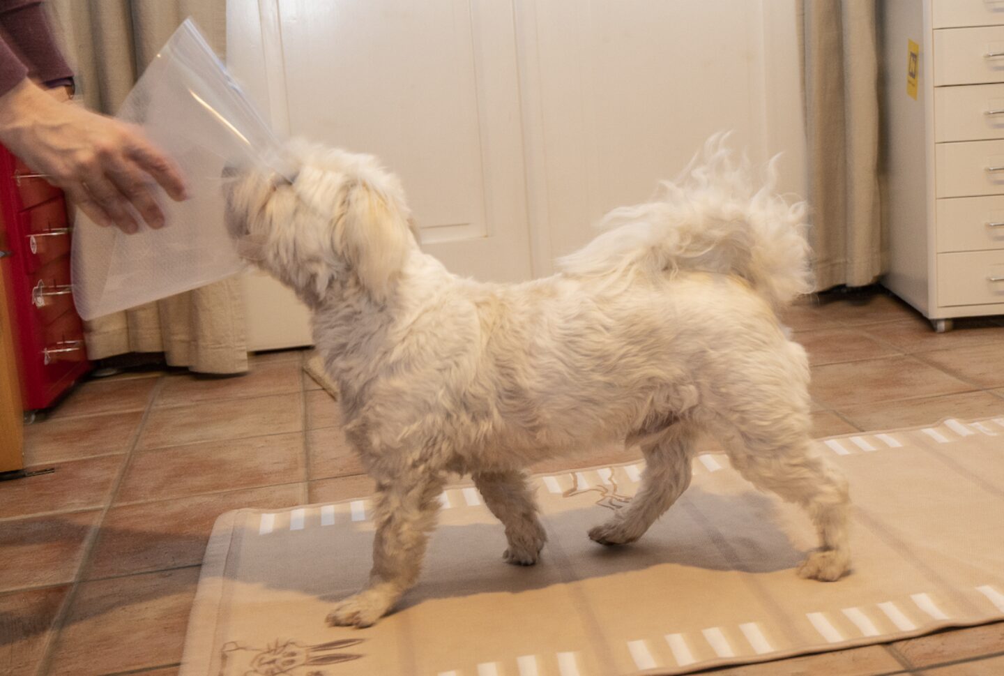 Der Weg in den Behandlungsraum ist für viele Hunde schwierig. Das tierärztliche Team sollte den Weg frei machen, beispielsweise auch durch Management anderer Patienten im Wartezimmer, und den Hund möglichst wenig beachten. Jedenfalls vermieden werden sollte, einen Hund mit Hilfe der Leine in den Behandlungsraum zu ziehen. Lassen Sie den Hund in den Behandlungsraum kommen und geben Sie ihm Zeit, sich einzugewöhnen. Idealerweise sitzt man als Tierärzt:in am Schreibtisch und erhebt die Anamnese, während der Hund Gelegenheit hat, den Raum zu explorieren und dort schon leckere Überraschungen vorfindet (z.B. Leckmatten am Boden mit kleinen Mengen Feuchtfutter und ein paar Leckerli ). In diesem Gespräch wird insbesondere geklärt, welche Maßnahmen bei dieser Visite durchgeführt werden sollen. Dabei gibt es Maßnahmen, die unbedingt nötig sind („Needs“) und solche, die für den Fall, dass es dem Hund schwerfällt, die Manipulationen zu tolerieren, vertagt werden können („Wants“).