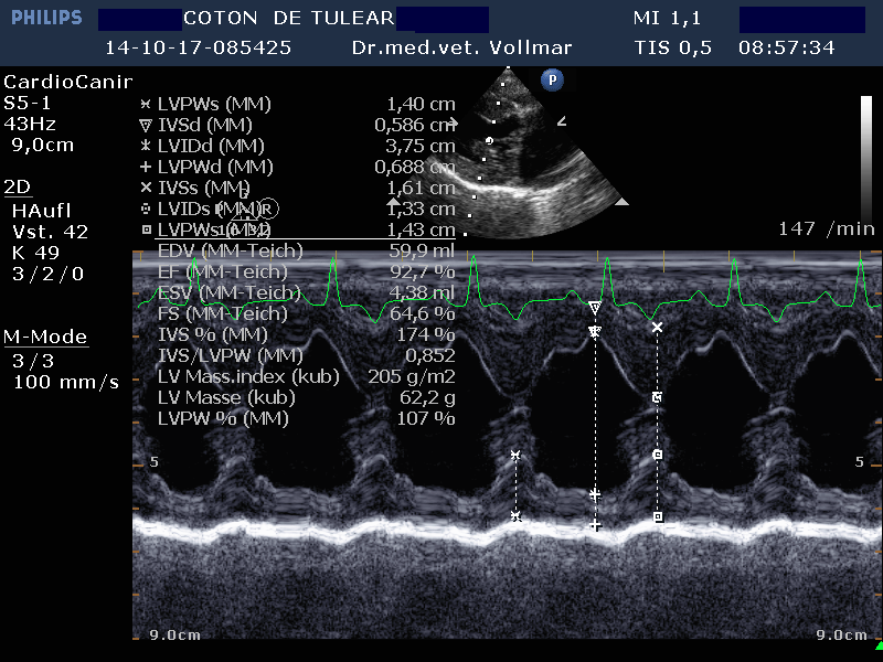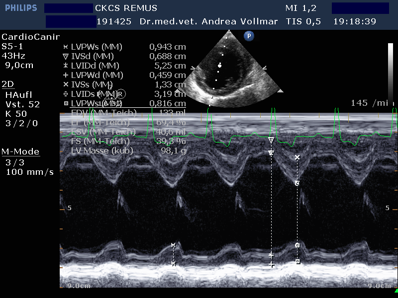 Die degenerative Mitralklappeninsuffizienz (MI) stellt beim Hund die Hauptursache für ein kongestives Herzversagen und kardial bedingten Tod dar. Im Krankheitsverlauf vergrößert sich mit zunehmender Schwere der Klappeninsuffizienz zunehmend der linke Vorhof und das diastolische Ventrikelvolumen nimmt zu, während das systolische Ventrikelvolumen erst mit nachlassender Kontraktilität bei Entwicklung einer Volumenüberlastungskardiomyopathie zunimmt. Bei kleineren Hunden unter 15 kg Körpergewicht ist dies oft erst später im Krankheitsverlauf der Fall, bei größeren Hunden über 15 kg hingegen häufig früher.