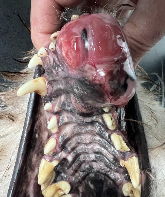 Zu den häufigsten malignen Tumoren der Maulhöhle beim Hund zählen Melanome, Plattenepithelkarzinome, Fibrosarkome und Osteosarkome. Trotz ihrer insgesamt geringeren Häufigkeit stellen Osteosarkome aufgrund ihres invasiven Wachstums und der oft späten Diagnosestellung eine besondere therapeutische Herausforderung dar. Für die Prognose ist vor allem eine frühzeitige und vollständige chirurgische Resektion im gesunden Gewebe entscheidend. Osteosarkome der Kieferknochen unterscheiden sich dabei in ihrem biologischen Verhalten von den Osteosarkomen der langen Röhrenknochen: Sie zeigen in der Regel ein geringeres Metastasierungsrisiko, wachsen jedoch lokal hochinvasiv. Der vorliegende Fall beschreibt das chirurgische Management eines über Jahre progredienten parostealen Osteosarkoms der Maxilla mit zunächst ungünstiger Ausgangslage und verdeutlicht, dass auch fortgeschrittene Befunde eine chirurgische Option darstellen können.