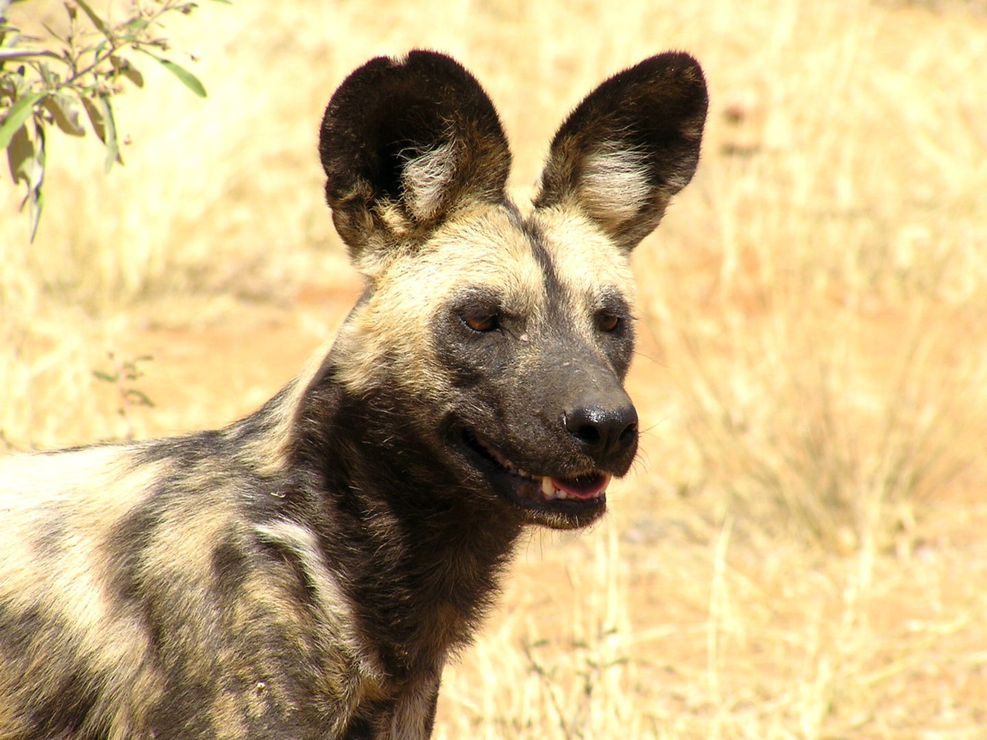 Die bunten, afrikanischen Wildhunde stehen ganz oben auf der roten Liste der vom Aussterben bedrohten Arten. Sie leben in Rudeln von bis zu 20 Tieren und werden von einem Alpha-Weibchen, der Matriarchin, angeführt. Nur dieses Alpha-Weibchen wird von einem Alpha-Rüden tragend. Während das Alpha-Weibchen die Welpen in einer Erdhöhle umsorgt und säugt, geht das Rudel auf die Jagd und versorgt Mutter und Welpen mit Futter. Die Wildhunde gelten als die erfolgreichsten Jäger Afrikas. Sie können über eine Stunde mit 50 bis 60 Stundenkilometer laufen und erlegen mit einer unglaublich raffinierten Strategie ihr ausgesuchtes Opfer - das sind meistens Antilopen. Dabei durchstreifen sie ein riesiges Jagdgebiet und legen täglich viele Kilometer zurück. Sie sind nach meiner Kenntnis die einzigen Raubtiere, bei denen die jungen, schwachen, alten und kranken Tiere zuerst fressen dürfen, bzw. mit hochgewürgtem Fleisch gefüttert werden. Dieses ausgeprägte Sozialverhalten wird angeblich in Management-Trainings als vorbildliches Beispiel präsentiert. Von ihrer Intelligenz her werden sie von Zoologen oft mit Delfinen verglichen. Auch vermutet man, dass ihre riesigen Ohren einer Art Ultraschall-Verständigung dienen.