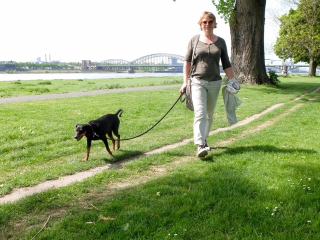 Die Lieblingsrunde von der Kölnerin Barbara Ellerbrock, vom Start an Mitglied des Matrosinnen-Chores, führt - wie sollte es anders sein - direkt am Wasser entlang. Von den "Pollerwiesen" aus sieht man auf die unverwechselbare "Skyline" des Rheinauhafens, dem Vorzeigeviertel der Domstadt. Bella, die achtjährige Hündin, ist ein Deutscher Pinscher, der das abwechslungsreiche Terrain dieser Runde sichtlich genießt und auf der Suche nach Mäusen auch schon einmal alles um sich herum vergisst.