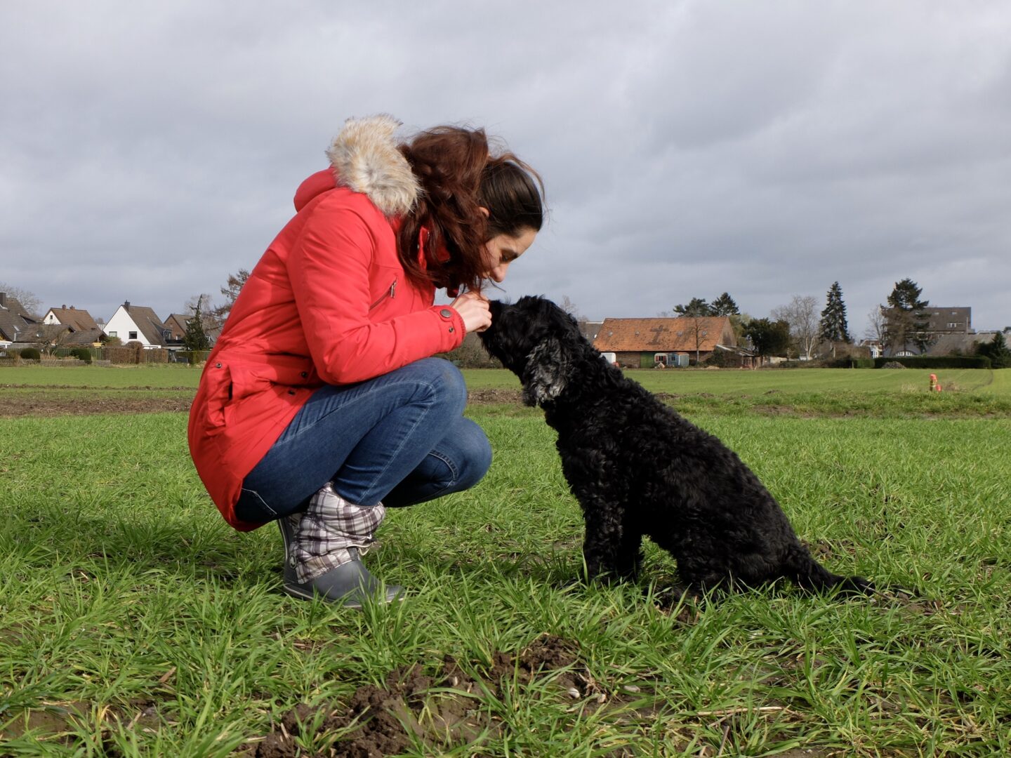 Chip ist das Paradebeispiel eines Cockers. Er ist ein lebenslustiger, verspielter Hund, der jedes Mal total begeistert ist, wenn es auf die Hunderunde geht. Früher wurden die Hunde bei der Jagd eingesetzt, haben Wild aufgescheucht und die Beute apportiert - auch aus dem Wasser. Seine Liebe zum Wasser lebt der Hund aus, als er in einem unbeobachtetem Moment genüsslich ein Bad in einer Riesenpfütze auf seiner Kaarster Lieblingsrunde nimmt. Die Rasse gehört in Deutschland übrigens zu den Top Ten, vor allem, weil Cocker Spaniel fast immer fröhlich, anhänglich, verspielt und verschmust sind. Catharina Lücking weiß natürlich, dass auch ihr Chip verfressen ist und alles macht, um ein Leckerchen zu ergattern. So macht er ihr jedoch die täglichen Erziehungseinheiten extrem leicht, wenn sie einen Teil seiner Tagesration als Belohnungs-Happen einsetzt.