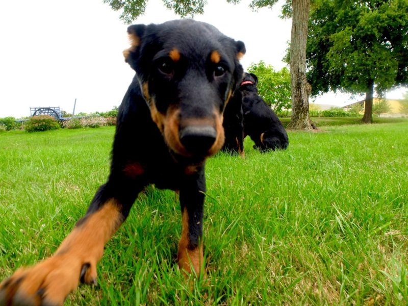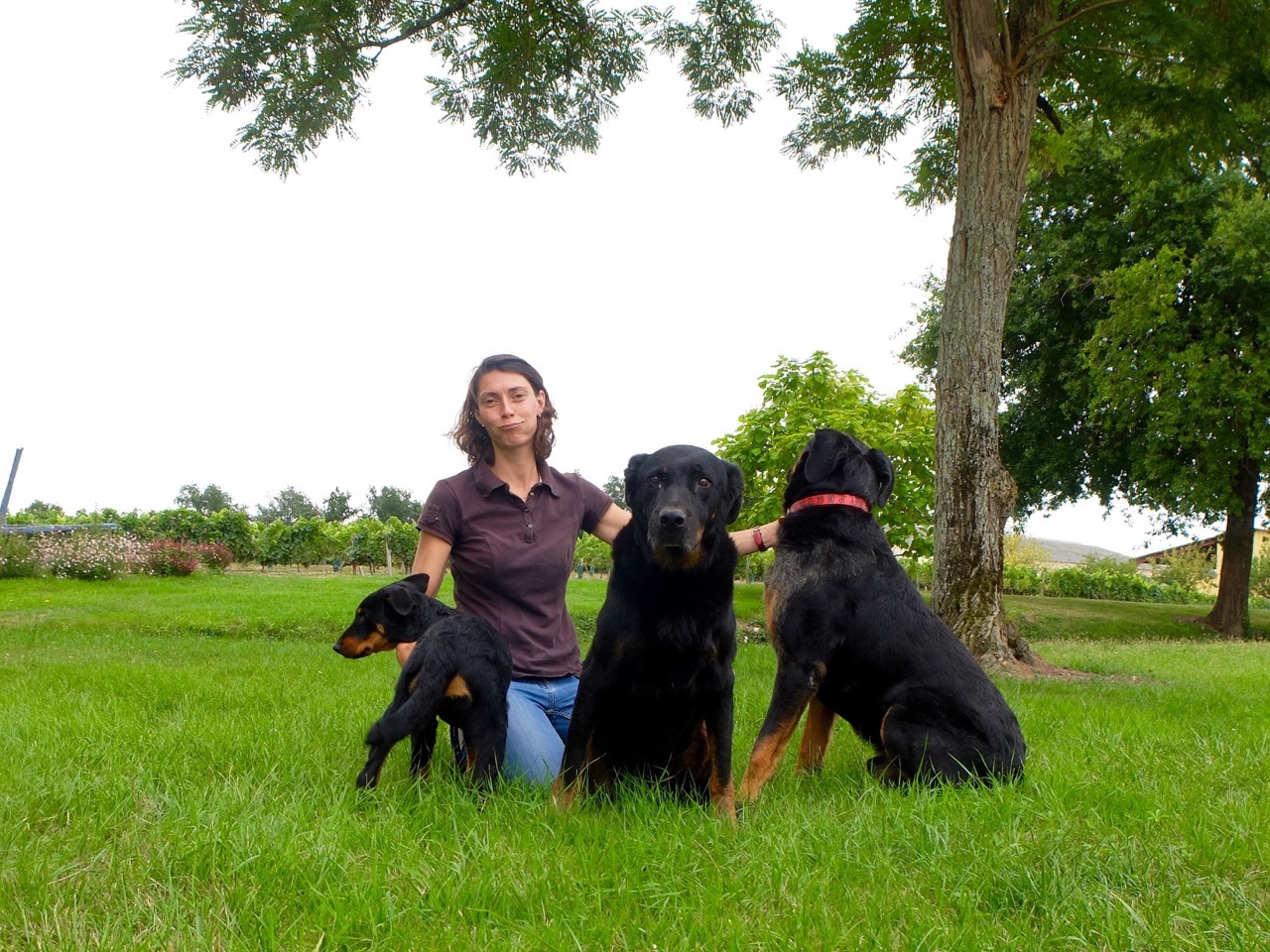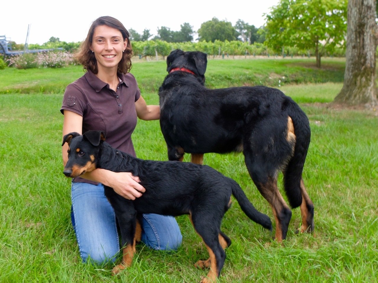 In Begleitung meines Berliner Freundes Lars, dem sehr neugierigen Nachwuchs-Weinfreund, mache ich mich dann einen Tag nach dem Nachtmarkt in Vensac auf nach Valeyrac, um das Weingut zu besichtigen und die Weine noch einmal in aller Ruhe zu „degustieren“. Begrüßt werden wir hier nicht nur von Melissa, sondern auch noch ihren drei Beauceron-Hunden, die an eine stämmigere Ausgabe eines Dobermanns, bzw. die schlanke Version eines Rottweilers erinnern. Cador (13 Jahre), Elios (4 Jahre) und Naïa (4 Monate) machen nur ihren Job und passen auf, dass hier auf dem Hof nichts passiert. Während sich die "Alten" nach der ersten Aufregung verlassen, begleitet und der Hundenachwuchs auf unserer Hofführung zur im Jahr 2000 renovierte Scheune mit den Stahltanks und zum Hauptgebäude, in dem die großen Eichenfässer liegen. Hier reift momentan noch der „Céleste“ aus dem vorigen Jahrgang – insgesamt zwölf Monaten lang liegt der Wein im „Barrique“, erhält dadurch seine einzigartige Note und ist dadurch viele Jahre haltbar. Der 2009er Jahrgang ist derzeit auf dem Höhepunkt, während der Wein aus dem Jahr 2010 noch ungefähr zwei Jahre in der Flasche reifen muss, ehe er zu einem unvergesslichem Weinerlebnis wird.