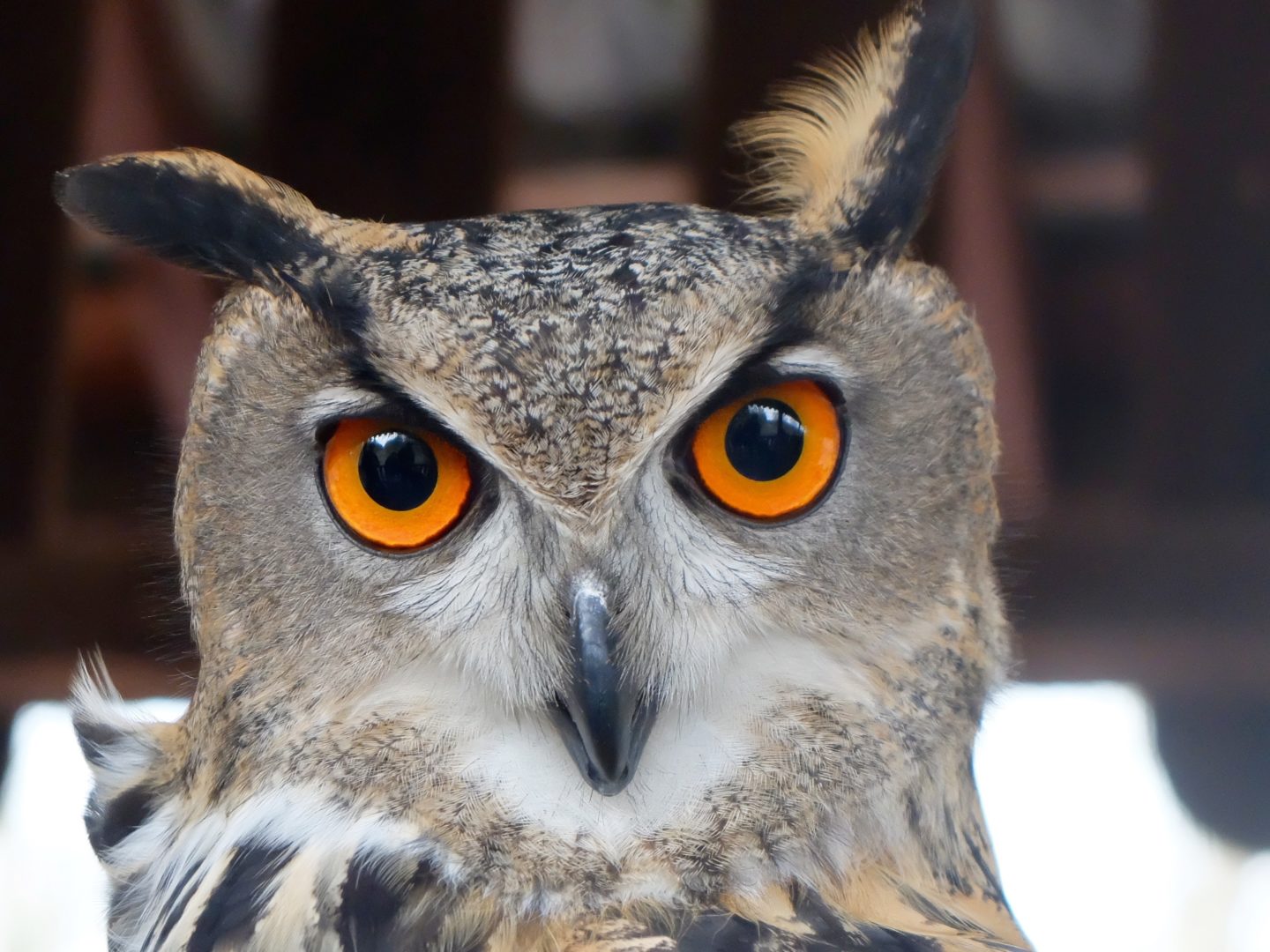 Uhu "Ash" ist der große Star der gefiederten Freunde, die Falknerin Birte Grieblinger an diesem Tag aus Zülpich mitgebracht hat. Auf der Beobachtungstribüne im Mohrenkopfwald stellt die Falknerin neben dem Uhu, der übrigens eine Statistenrolle im Kinofilm "Wendy I" hatte, noch Steinkauz "Twingo", Mäusebussard "Blind", Schleiereule "Vajana" und Wüstenbussard "Sky" vor. Alle Vögels leben in Zülpich mit vier Hunden und sind daher an die Vierbeiner gewöhnt, auch wenn Ash faucht, als sich Pepples und er zu nahe kommen. Während die Kids die Vögel vorsichtig streicheln durften und der Falknerin begeistert massenweise Fragen zum Leben der Greifvögel stellen, ist Pepples von den Hauptdarstellern der Veranstaltung doch mehr als beeindruckt und froh, als die Show nach gut 30 Minuten zu Ende ist. FAZIT: Wer die Chance hat, sollte diese unbedingt wahrnehmen und sich in die Welt der Greifvögel entführen lassen. Kosten: € 4.- Erw. / € 3.- Kinder.