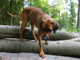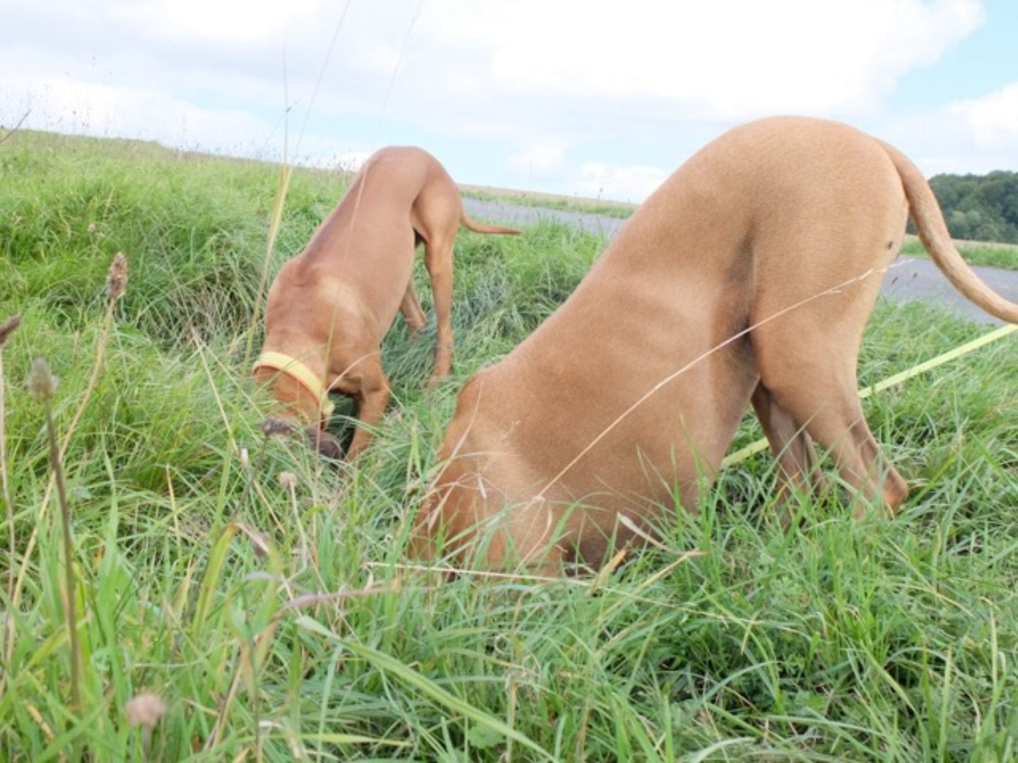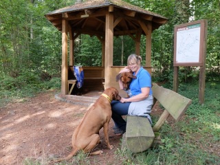 Nach der abwechslungsreichen Runde über Felder und Wiesen und durch die Wälder freuen sich die beiden Ridgebacks schon auf ihre Leckerlies und Martina auf das Reisebloggertreffen.