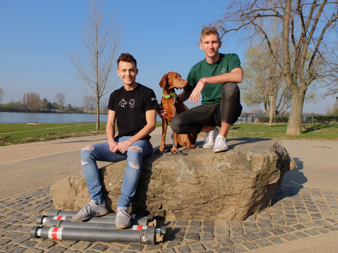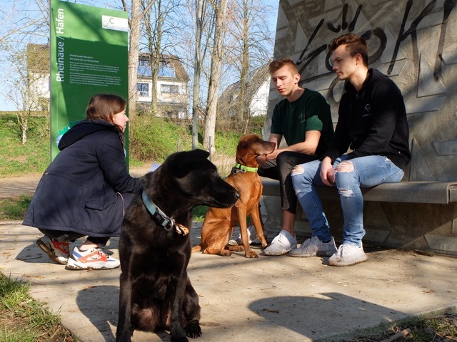 Während wir uns langsam mit den beiden Hunden in Bewegung setzen, wird erst klar, wie schön die Tour am Rhein eigentlich ist. Einige Kilometer weiter südlich mündet die Sieg in den Rhein. Das Mündungsgebiet der Sieg ist eine der letzten naturbelassenen Rheinmündungen und wurde im Jahr 1986 unter Naturschutz gestellt - hier entstand das Naturschutzgebiet Siegaue und Siegmündung. Das bedeutet natürlich, dass die Hunde angeleint sein müssen, doch es gibt auf dieser Hunderunde einige ausgewiesene Freilaufflächen, auf denen sich die Vierbeiner herrlich austoben können.Zunächst nehmen wir den Fußweg, der uns um den Yachthafen in Mondorf führt. Auf den ersten Metern bereits erklären Fabio und Luis, welches Projekt sie denn eigentlich derzeit bewegt. Die beiden wollen mit ihrem Tierschutzprojekt ganz neue Wege gehen und erklären: "Wir wollen Helfen einfach und schön zugleich machen!"