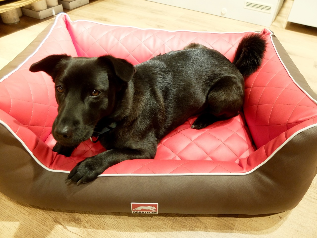 Hunde sind im neuen Store im Kölner Süden unbedingt willkommen. "Das macht natürlich Sinn", sagt Oli Petszokat, "denn der Vierbeiner sollte die Hundebetten vor dem Kauf ausprobieren, bzw. sollte gewogen werden, wenn wir eine Ernährungsberatung durchführen!" Als erster Kaufinteressent durfte Mischlingsdame Pepples die Probe aufs Exempel machen und legte sich in das stylische Hundebett "Dog Luxury Earl" in Größe M, das aus nahezu porenfreies Kunstleder mit einer bequemen Füllung besteht, das in Handarbeit gefertigt wurde. Diese Qualität muss man natürlich bezahlen - für 329 Euro hätte dieses Hundebett den Besitzer wechseln können.