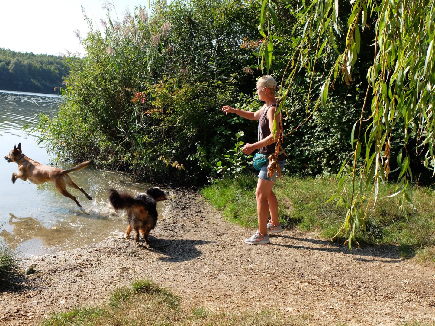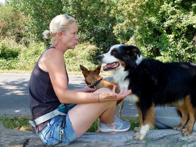 Unter dem Motto „Erziehung fördern – Abenteuer erleben“ lehrt sie Menschen, Hunde durch die Herausforderungen der Großstadt zu lavieren, klare Strukturen zu entwickeln und durchzuhalten. Und auch, wie eine soziale Bindung zwischen Mensch und Hund idealerweise aussieht. An einem herrlichen Septembertag ist die Hundetrainerin mit ihren Hunden Köbes und Pepper auf ihrer Lieblingsstrecke rund um den Otto-Maigler-See unterwegs. Köbes ist ein „Kind der Liebe“, eine Mischung zwischen Malinois und Labrador Podenco, Pepper ein Australian Shepherd.