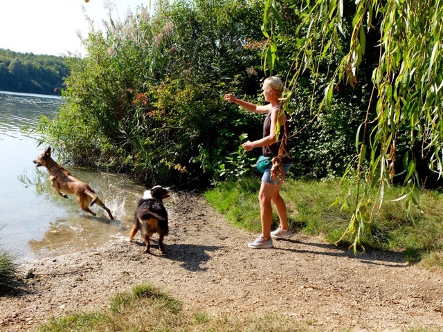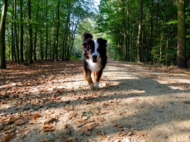 Die Hundeexpertin weiß um die Eigenarten und Stärken ihrer Tiere, lässt die beiden da, wo es erlaubt ist, frei laufen. Und Köbes macht Strecke – kraftvoll dreht er große Runden, erforscht unerschrocken Unterholz und neue Wege. Sobald ein anderer Hund zu sehen ist, ruft sie und beide Hunden mucksen und zögern nicht, sondern sprinten gehorsam zu ihr.