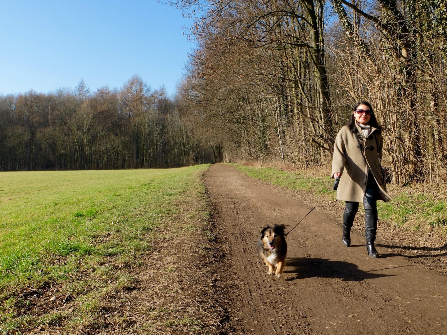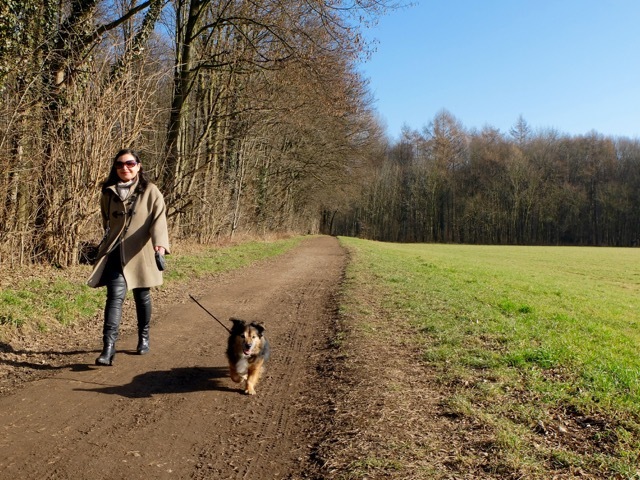Drei Dinge sind dem Kölner besonders heilig: der Dom, der Rhein und der Karneval. Für diese Hunderunde spreche ich deswegen mit einer Frau, die nicht weniger vorhat, als eines dieser Heiligtümer anzugreifen. Im Kölner Süden treffe ich Elena Navarini mit ihren zwei Mischlingshunden Otto und Lilli. Wir wollen uns auf ihre Lieblingsrunde zwischen Waldrand und Rhein in Rodenkirchen begeben. Navarini ist selbst nur gefühlte 1,60 Meter (ihre wahre Größe verschweigt sie) aber probt jetzt den ganz großen Aufschlag. Groß vor allem deswegen, weil sie vor drei Jahren nicht weniger als eine echte Revolution im Kölner Karneval losgetreten hat. 2014 hat sie den ersten weiblichen Funken Korps gegründet, die „1. Damengarde Coeln e.V. 2014“.
