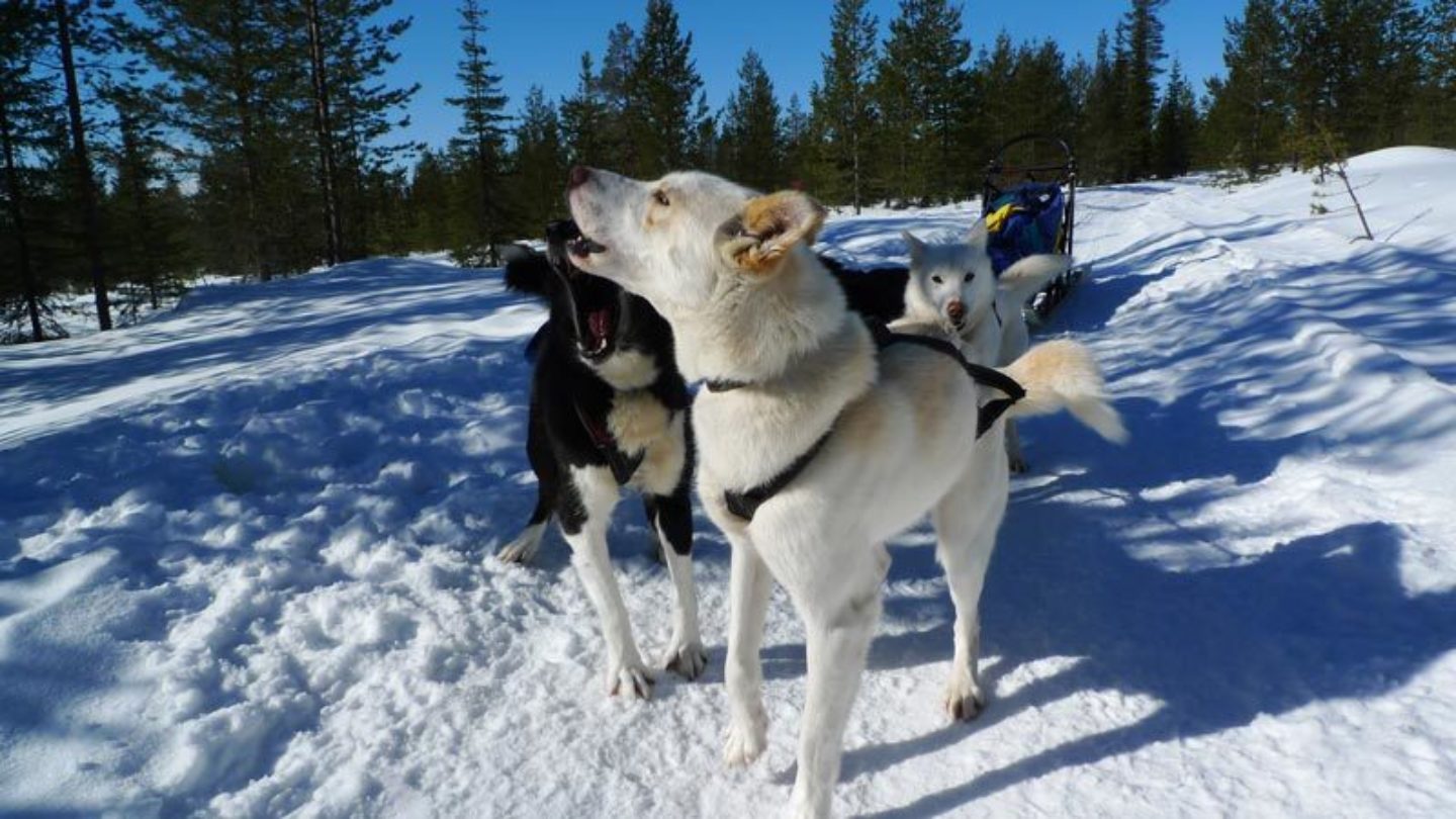 Es ist stockduster. Minus 25 Grad. Keine Elektrizität. Das ist gerade aber unwichtig. „Jip, jip,jip!“ schreit mir mein Hund ins Ohr, wild zappelnd. Die anderen jaulen tiefer mit. Ich bin da, um sie zu beruhigen. Interessante Idee. Ich hocke dick vermummt mitten in der Nacht im Wald von Finnland. Lappland, um genau zu sein. Und es ist klar, dass mein Hundeteam sich jetzt nicht beruhigen lässt. Nicht, wenn zwei Gespanne aufbrechen dürfen zum Rennen und wir nicht mitrennen werden. Ich habe Gänsehaut und das Gefühl, dass so vor Urzeiten Menschen die Wölfe im Wald gehört haben.