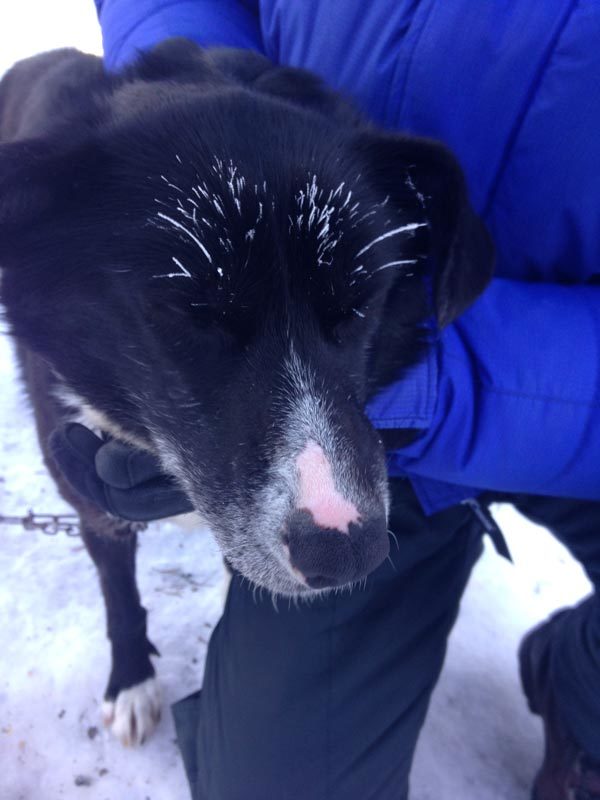 Elite, Idaho, Finjar und Rocca heißen meine. Wir lernen die Hunde anzuschirren und laden auf – sehr wenig persönliches Gepäck, viel gefrorenes Fleisch und Trockenfutter, Lebensmittel. Wir brauchen auch nicht viel: Die Kälteausrüstung wurde uns gestellt und wir sehen in den dicken Hosen und Jacken aus wie Michelinmännchen. Kalt ist niemandem, die trockene Kälte ist angenehm zu ertragen und bereitet kaum Probleme. Aber von denen soll später erzählt werden.