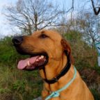 Lovis ist ein toller Hund. Die Mischung macht's, dass man den Broholmer-Ridgeback-Mischling einfach gern haben muss. Lovis ist wie jeder Broholmer wachsam, aber nicht agressiv, sondern eher freundllch - kein Wunder, dass diese Rasse schon als Beschützer der Kinder am dänischen Königshof eingesetzt wurde. An Lovis' Rücken fehlt zwar der Ridge, der Haarkamm, bei dem das Fell entgegen der normalen Haarwuchsrichtung wächst, fünf seiner acht Geschwister jedoch tragen dieses "Markenzeichen". Als typischer Rhodesian Ridgeback liebt Lovis es, stundenlang im Unterholz den Fährten diverser Tiere nachzuspüren. Gerissen hat er übrigens noch nie eines. Früher war es der Job der Ridgebacks, Löwen aufzuspüren und so lange am Platz zu binden, bis die Jäger vor Ort waren. Das kommt noch hin uns wieder durch, wenn sich Lovis statt Löwen Rübenlaster, Traktoren und anderen großen Autos in den Weg stellt, laut bellt und diese nicht eher weiterfahren lässt, ehe seine Besitzerin eintrifft.