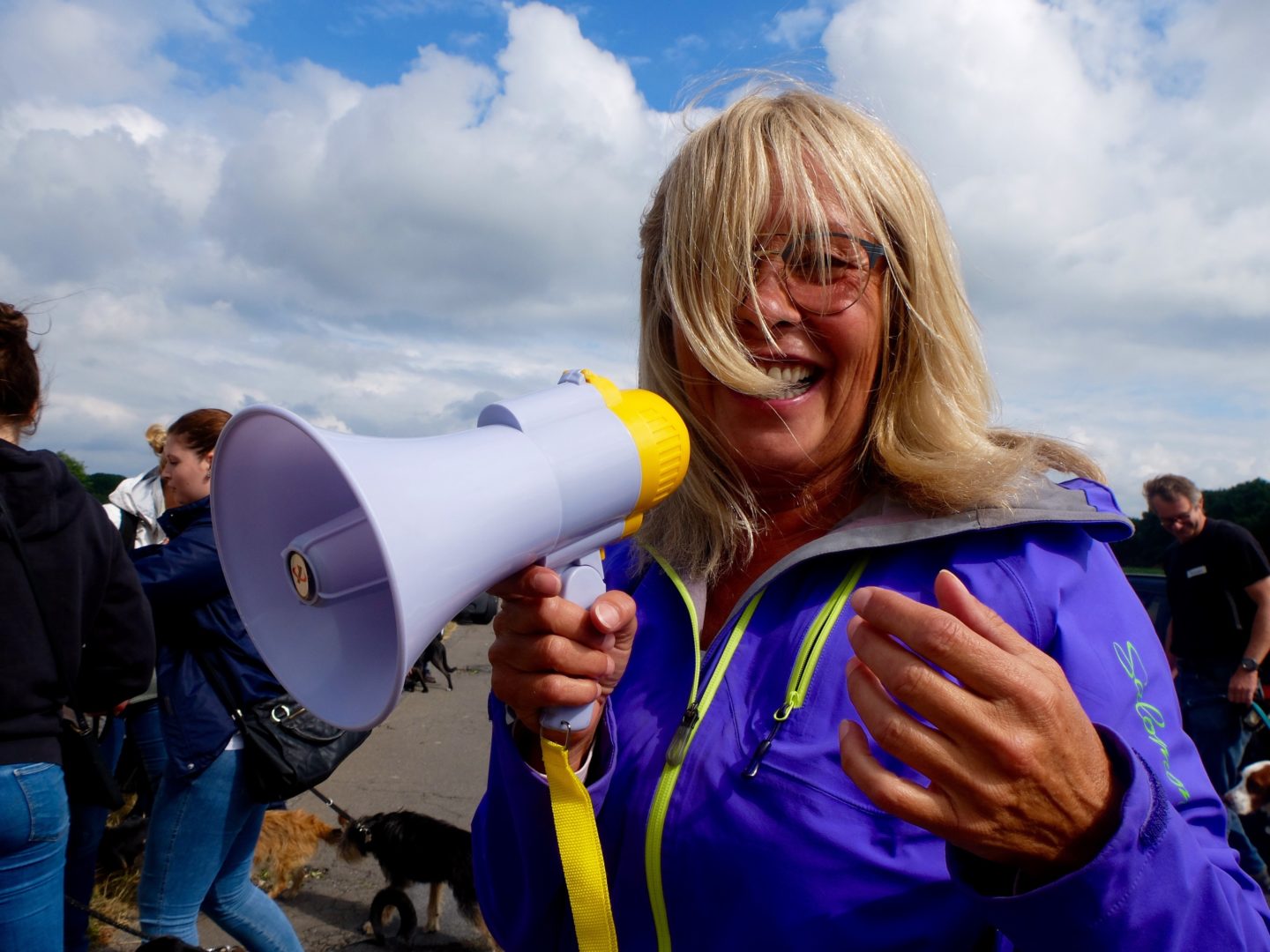 Mallekojoten-Wandertag. In Wassenberg trafen sich 80 Zweibeiner, 50 Hunde - und ein Star. Hierbei jedoch handelt es sich nicht um Talkmasterin und Buchautorin Margarethe Schreinemakers, die zu dieser gemeinsamen Hunderunde einlud, sondern um den dreijährigen Hund "Black". Der gutmütige, kleine Hund wurde von seinen Besitzern auf Mallorca im Tierheim abgegeben und stand dort auf der Tötungsliste. Die Talkerin jedoch hat mit Helfern der von ihr gegründeten gemeinnützigen Organisation "Margaretes Herzensprojekte" den schwarzen, liebenswerten Hund mit der "sensationellen Fehlbissstellung" gerettet und nach Deutschland geholt. Und hier ist sie nun auf der Suche nach einem guten Zuhause für den Vierbeiner.