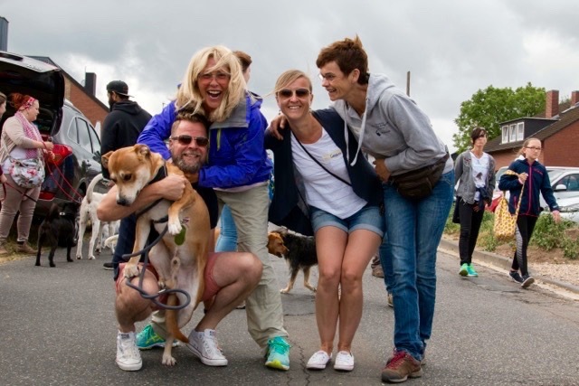 Einmal im Jahr treffen sich die Paten mit ihren Hunden zur Kojotenwanderung. Elke und Karlheinz Keimes, die Züchter von Schreinemakers erstem Hund "Aik", organisieren für die knapp 80 Teilnehmer eine schöne und abwechslungsreiche Hunderunde in der Nähe der Kleinstadt Wassenberg. Die Kleinstadt im Dreiländereck ist übrigens Städtepartner der französischen Stadt Pontorson mit dem Felsenkloster Mont St. Michel. Auf der "Kojotenwanderung" gab es jede Menge Zeit zum Austausch für Teilnehmer - Freunde von Schreinemakers, Unterstützer von "Margaretes Herzenprojekte", Besitzer der von ihr vermittelten Hunde meiner Hunde und Fans von ihr und ihren Hunden - sich zu unterhalten. Schreinemakers ist so etwas wie die Mutter der Kompanie, bewaffnet mit einem Megaphon und mit ganzem Herzen sowie voller Energie dabei. Sie kennt jeden einzelnen Hund, deren Krankengeschichten und führt Gespräche mit den Besitzern. Nach der Wanderung folgt ein gemeinsames Essen im (natürlich) hundefreundlichen Hotel-Restaurant Rosenhof. Ganz nebenbei kommen 1220 Euro durch eine Tombola für die Organisation rein. "Das Geld geht zu 100 Prozent direkt an das Kojotenprojekt", erklärt die Tierretterin.
